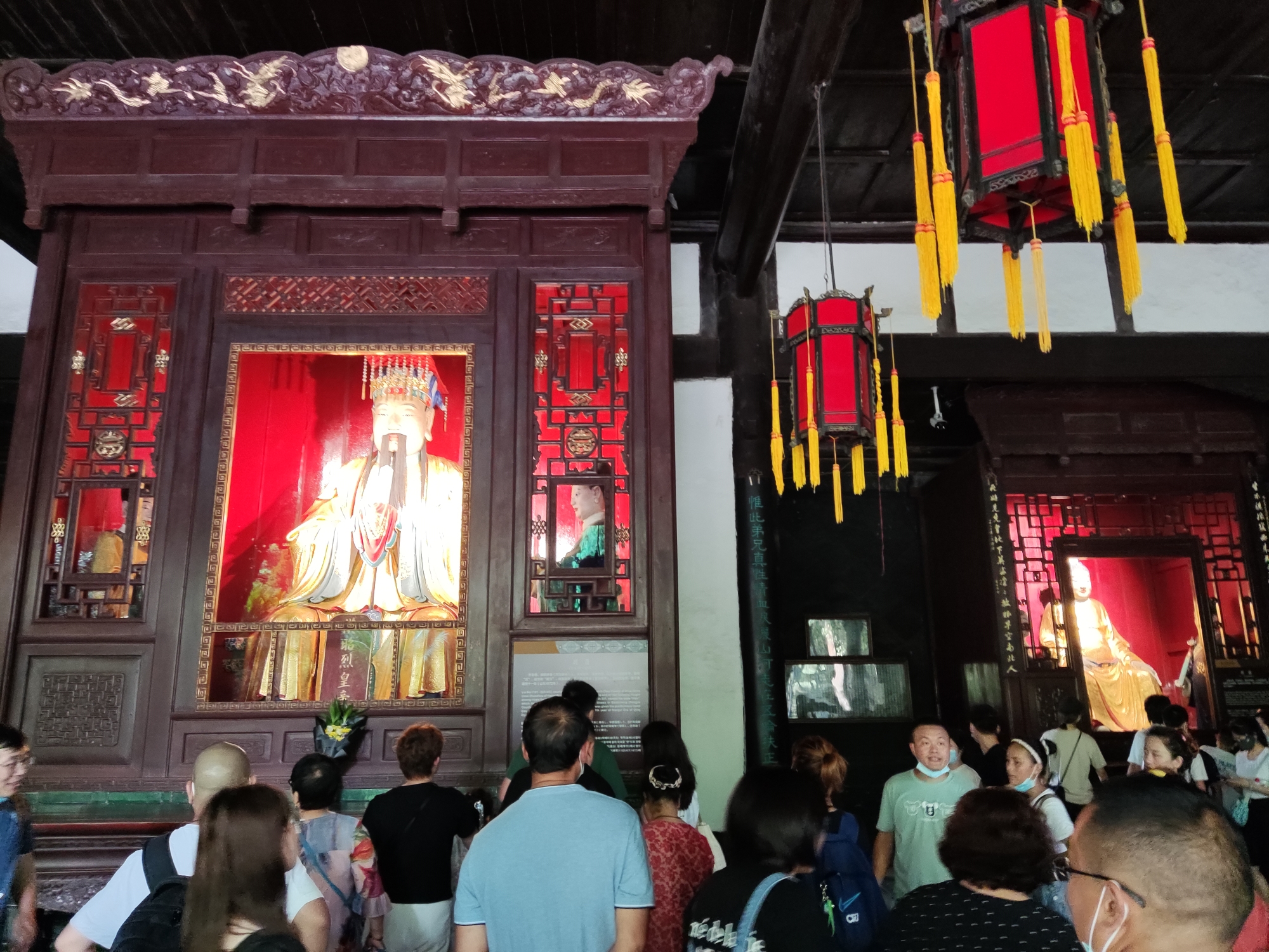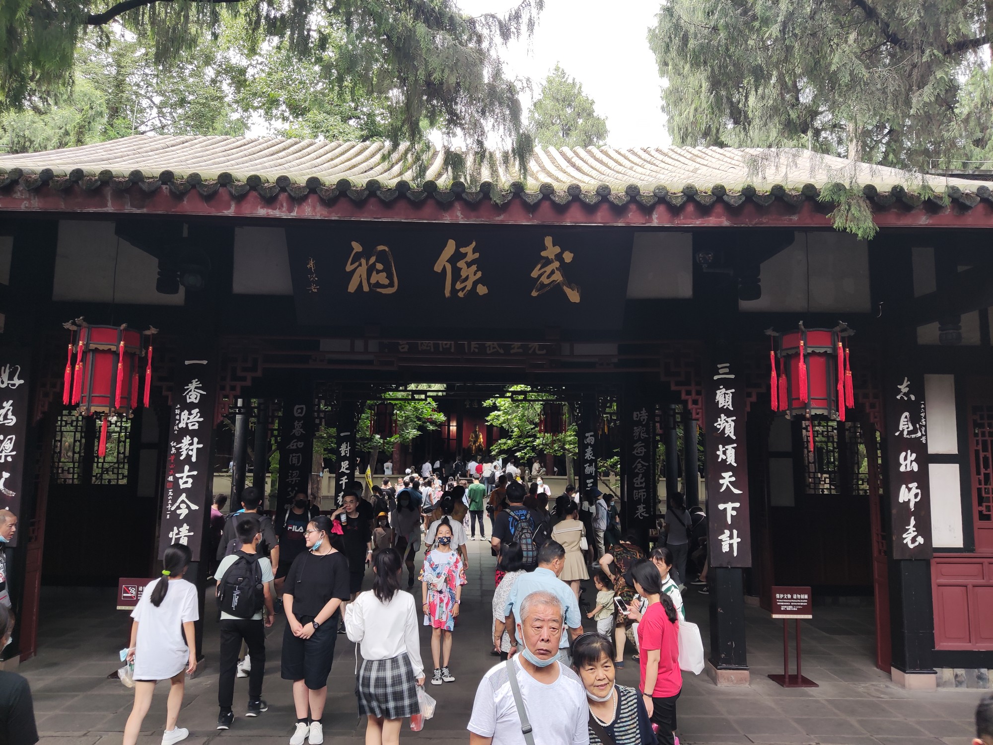 又去了武侯祠。武侯祠门口就已经人山人海了!如此,哪里有"无边碧草自春色,隔叶黄鹂空好音"?黄鹂看到这么多人早吓跑了!