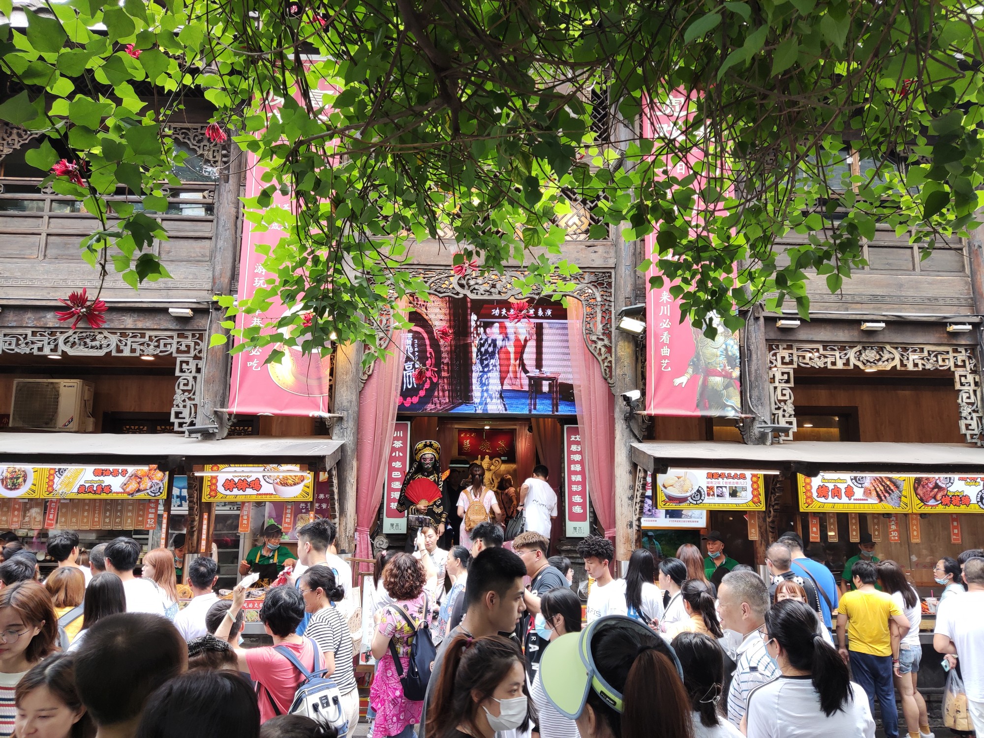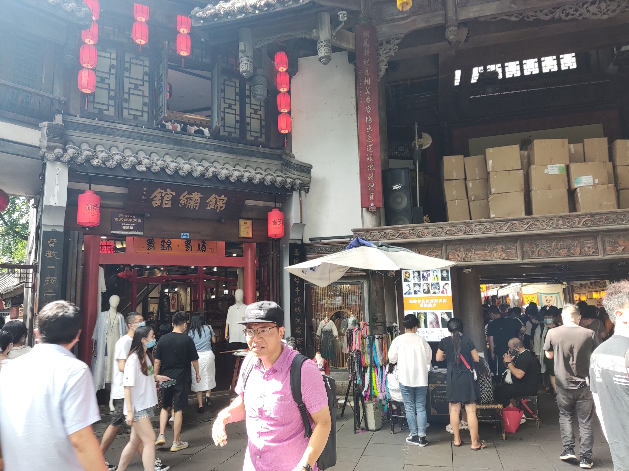 出来后,就到了锦里。和宽窄巷子差不多,就是老街。不知到底是因为今天周六,还是疫情真的不被太在意了?……
