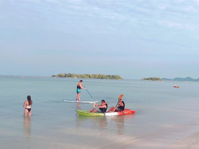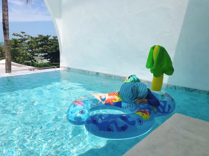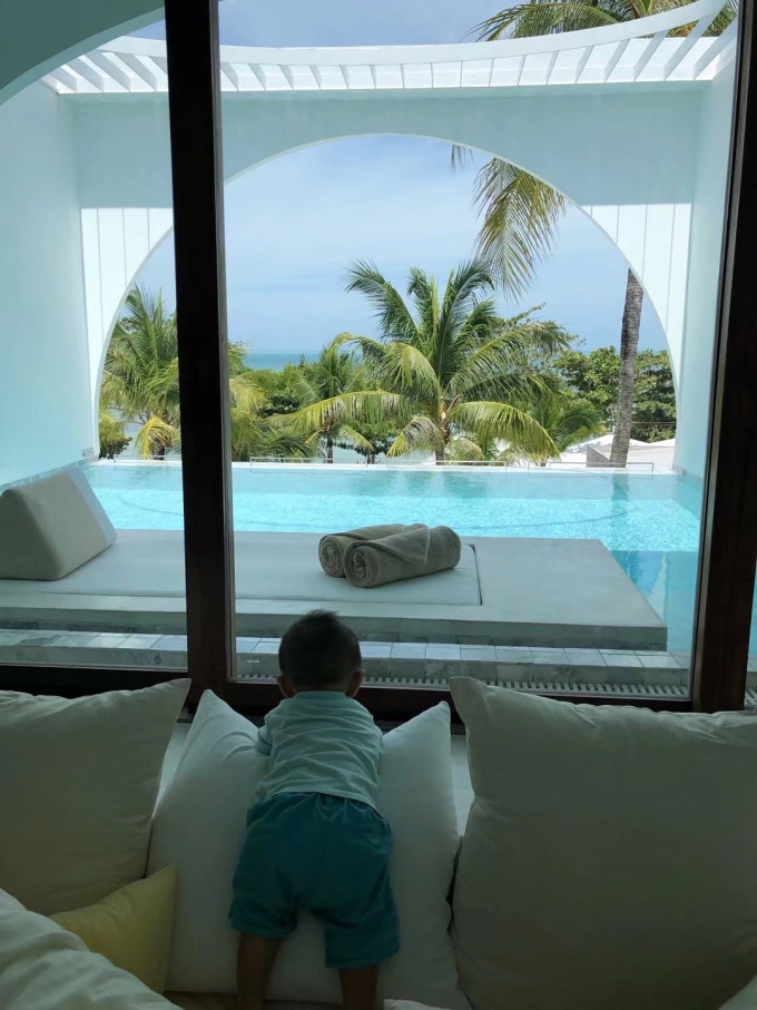 我们此行选了三个酒店,第一个是小红书网红查汶海滩sala度假酒店,他的位置在繁华的查汶海滩,酒店前门出去是沙滩,后门出去是小商业街,酒店离苏梅岛的大商场步行还得20分钟的距离,但是酒店后门出去就是个小超市,旁边还有个711。都说查汶沙滩是苏梅岛最好的沙滩,但是沙质也分区域,我们住的这个酒店沙质一般,会零星有小树叶和草棍,不如马代沙滩那么纯净。酒店分为前后两个部分,中间被马路隔开,前面是靠近海边的只有一栋楼,二层三层阳台有泳池,海景房,餐厅也都在前院。后院是园景房,没特点,价格便宜。baby club在后院,每天带我儿子来上一会泰式英语课
