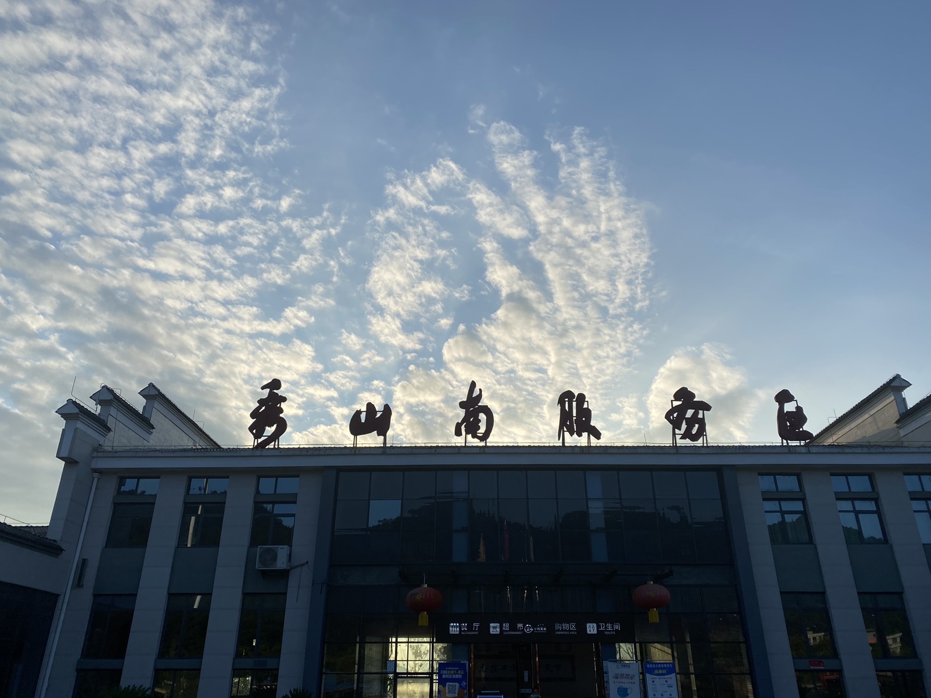 之前沿途几个服务区均没有东西吃,到了秀山南人困车乏,只得稍作休息,吃点上车前买的水果垫垫肚子,权当早餐,吃完继续出发,前往重庆市区。