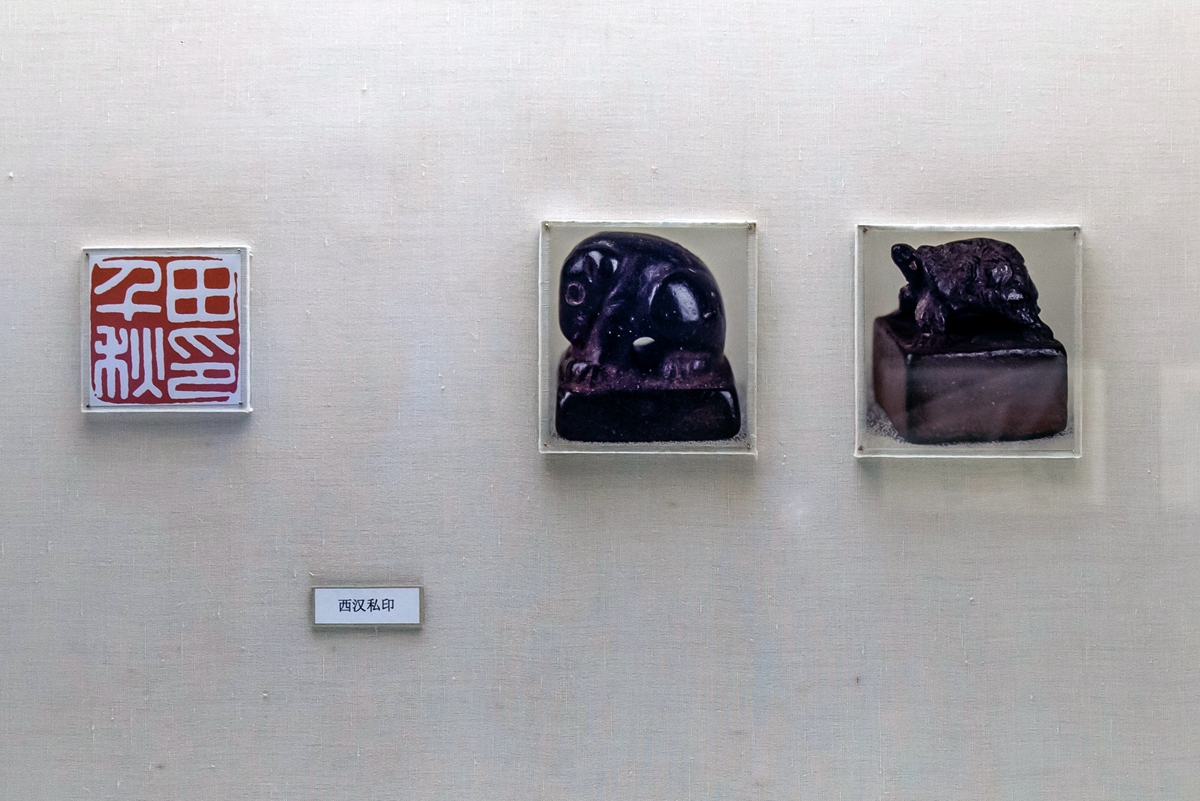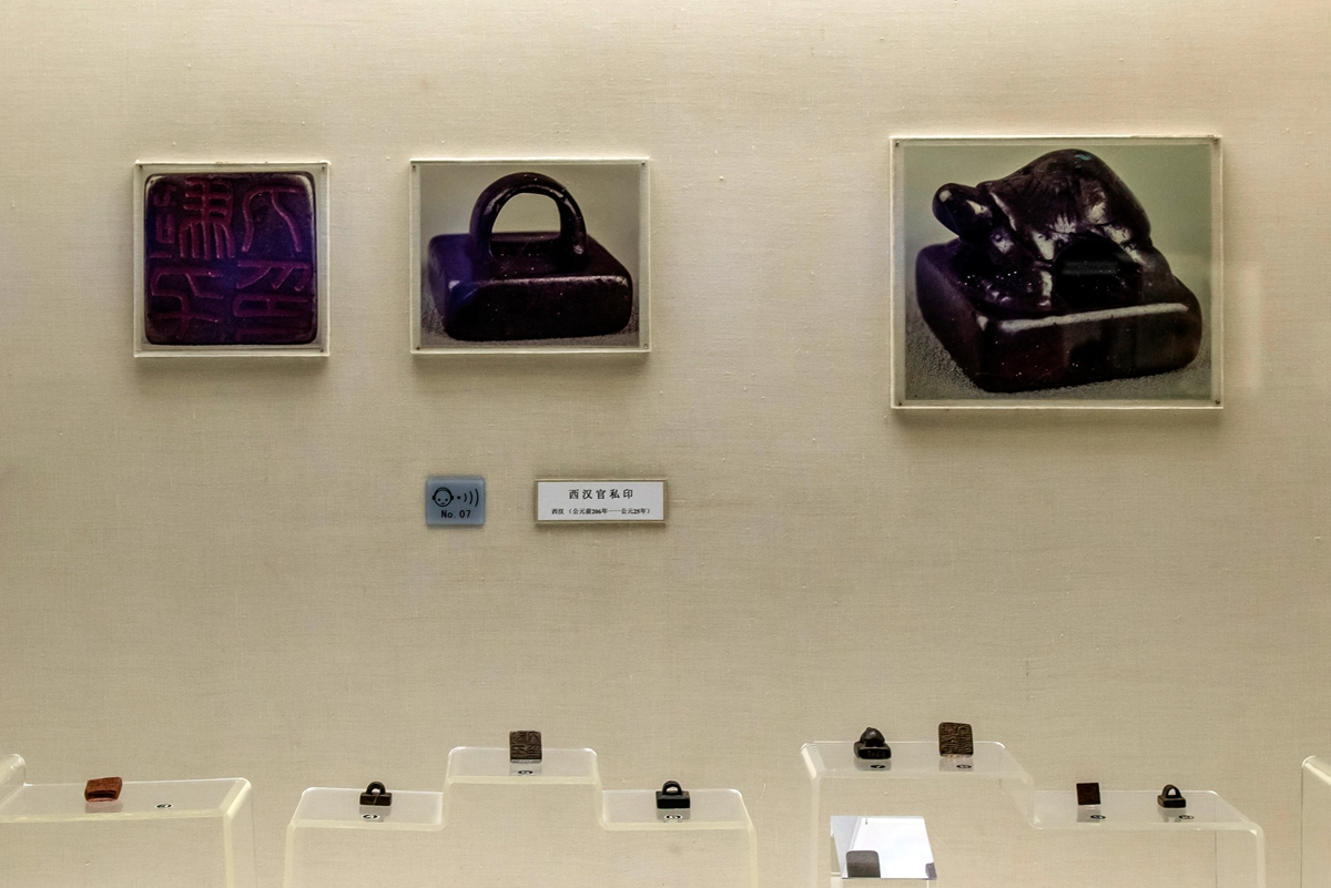 秦汉印系的确立和绵延:秦代推行“书同文”的政令,玺印文字、钮式趋于统一,与中央集权封建政治相适应的官印制度开始建立,至西汉趋于完备,各级官爵印行成了严格的规范,缪篆成为印章的专用书体,由此形成绵延近八百年的秦汉印系。