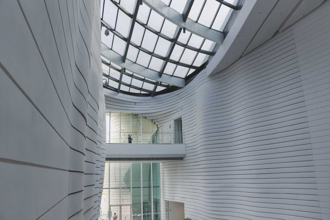 美术馆每周一闭馆,共分为三层,光线及色调是从暗到明的,内部的空间布局和黑白造型让人感到自由。美术馆会根据不同主题分别展示了不同的展品,好好逛需要一整天时间,我们参观的时间恰逢“生生不息,叙事的黄河”主题展。
