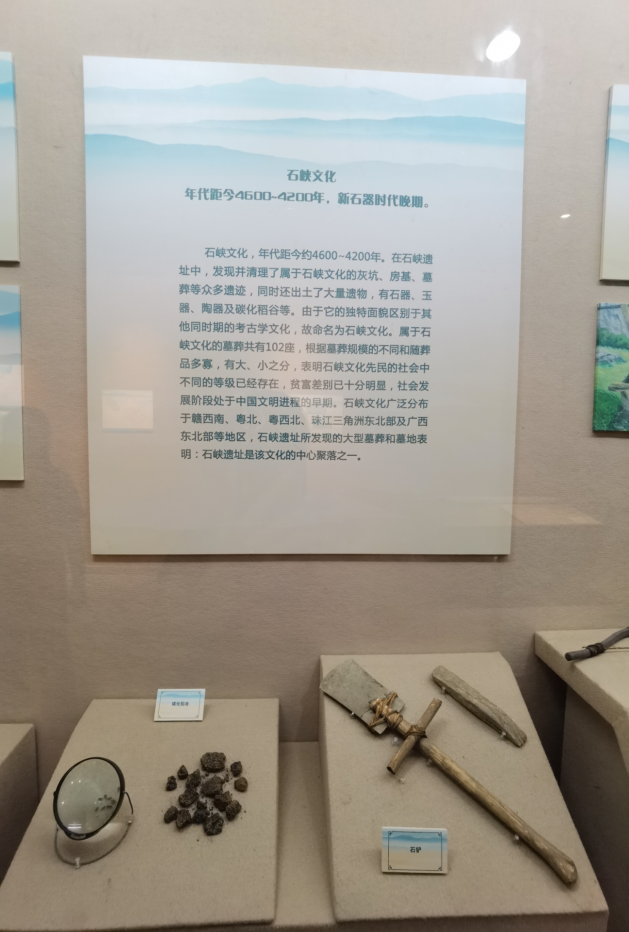 沿着公园的林荫道,再往前几十米,就是规模颇显壮观的马坝人博物馆,介绍著名的石峡文化。