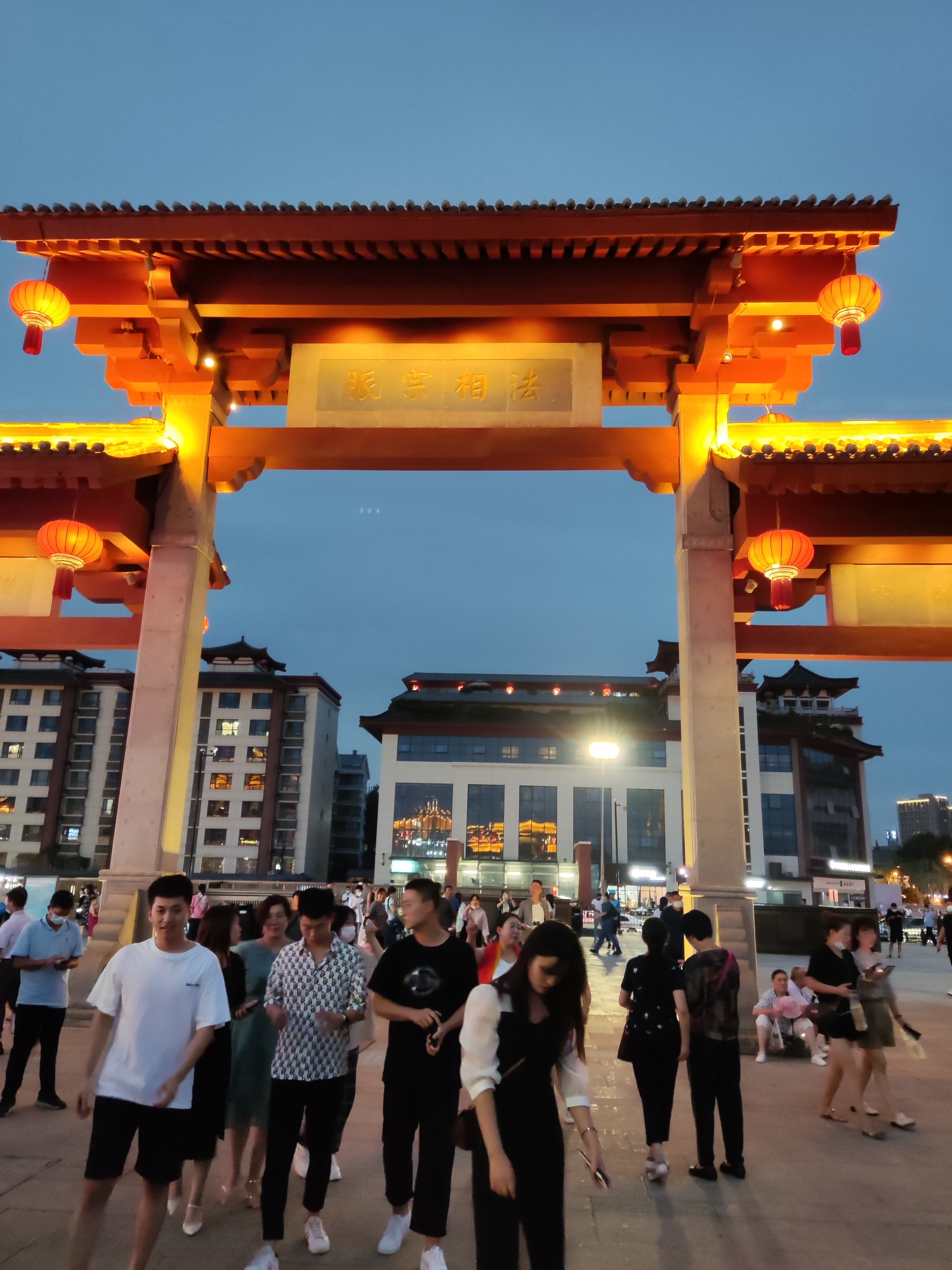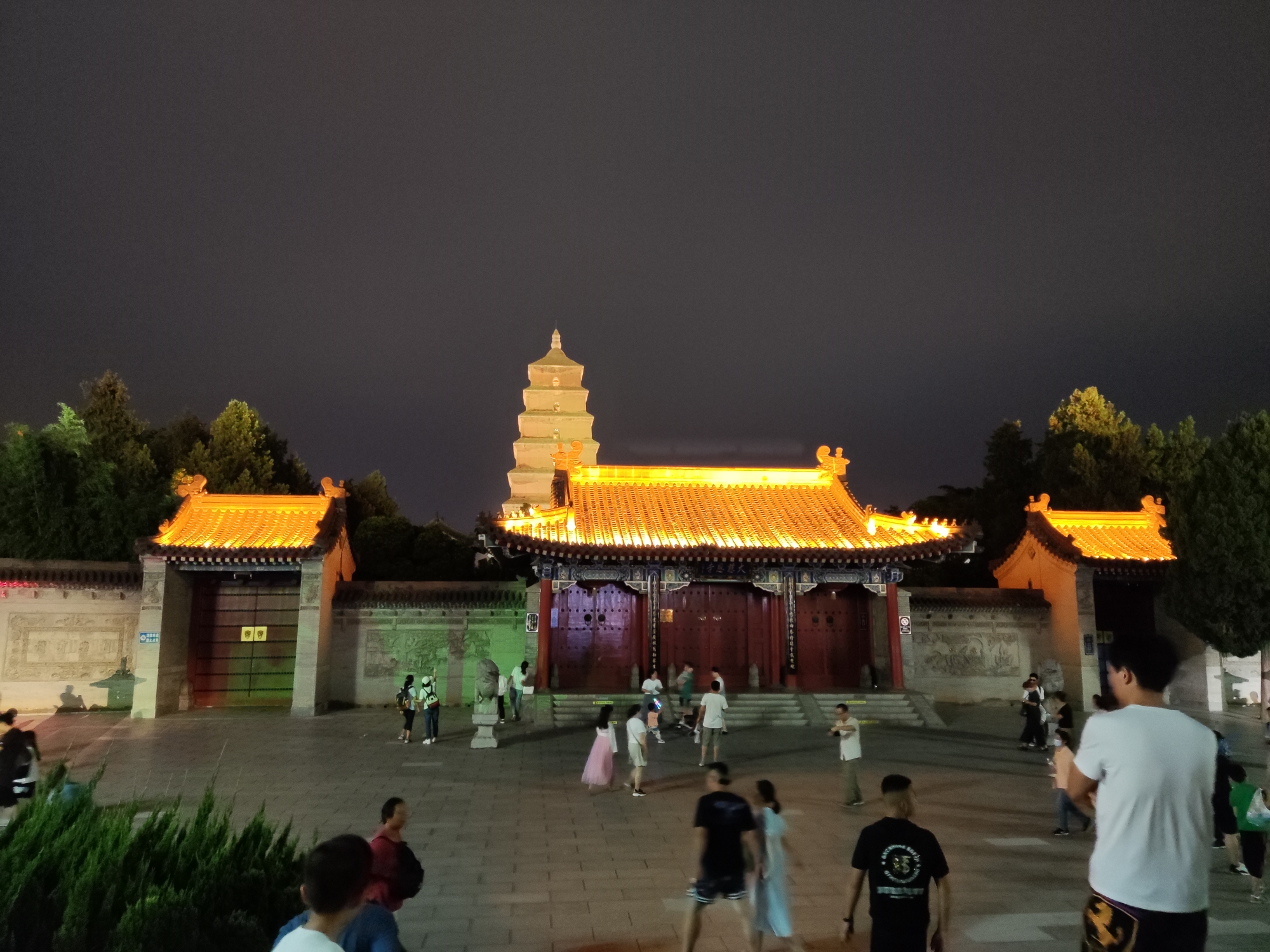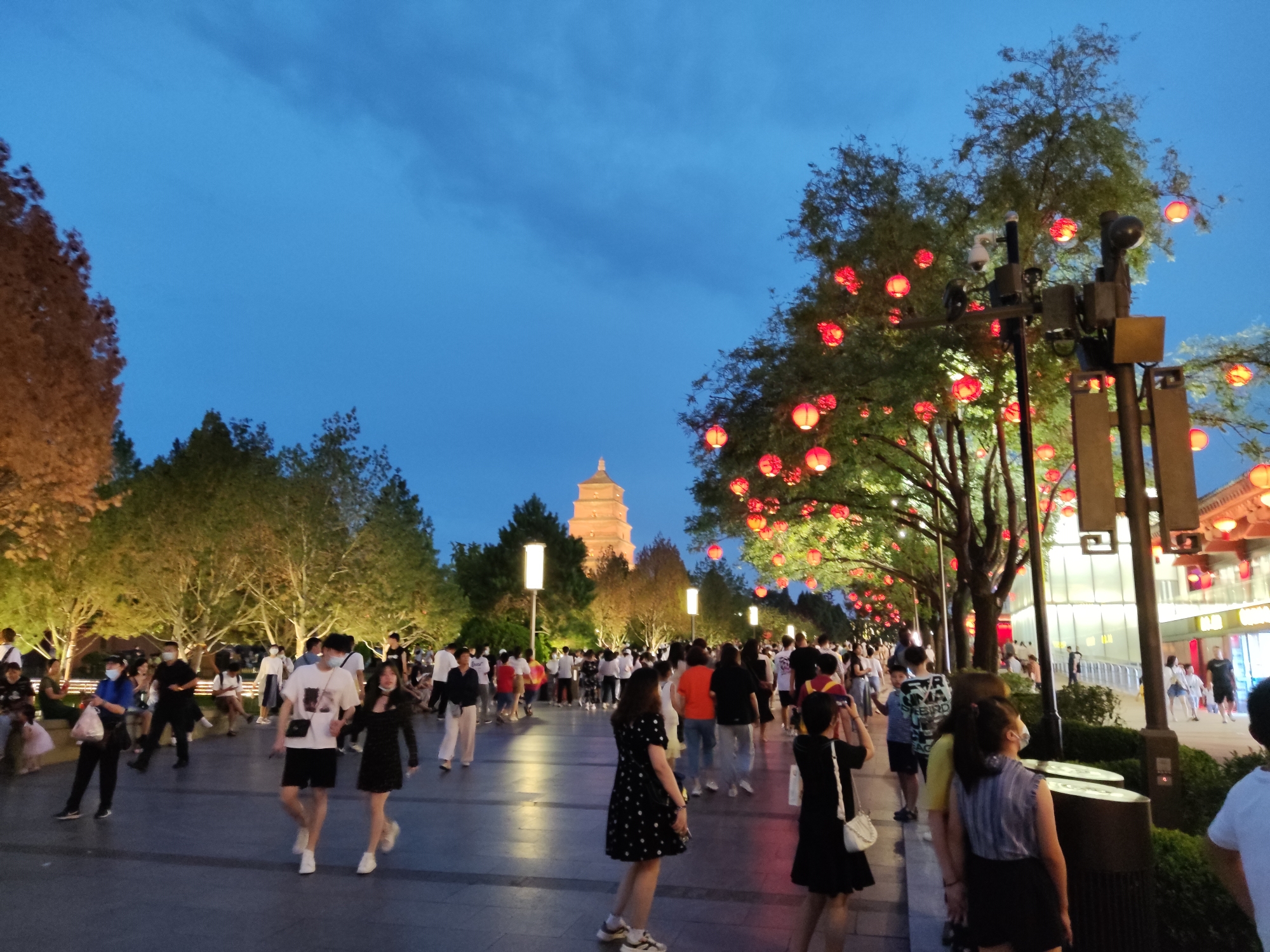 骑共享单车去了大慈恩寺看夜景,然后在大唐不夜城向前走。
