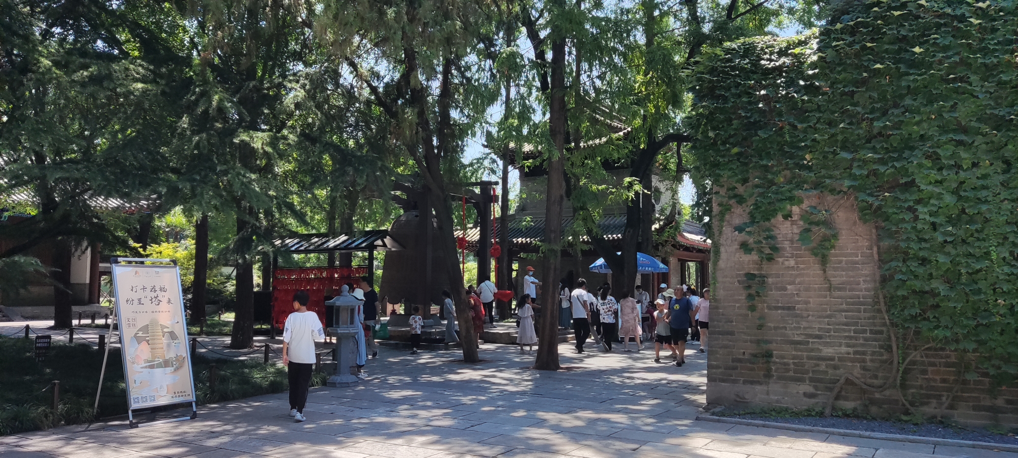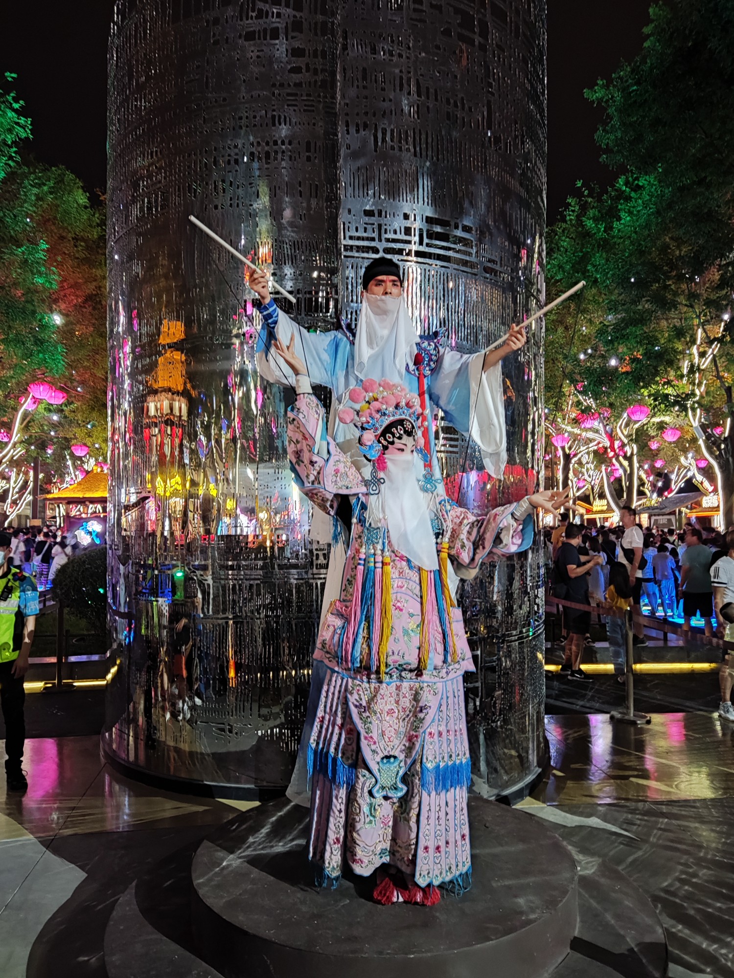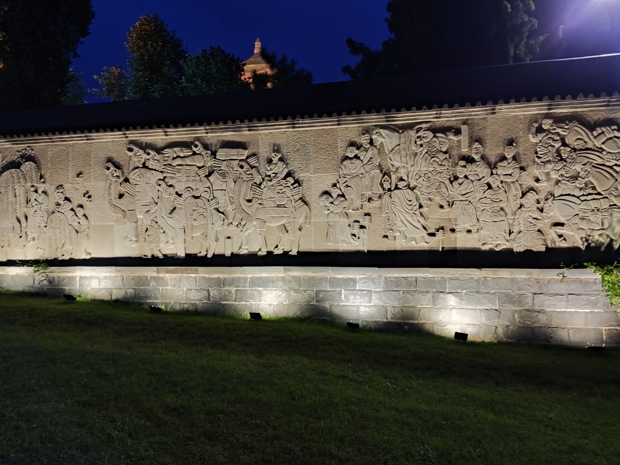 骑共享单车去了大慈恩寺看夜景,然后在大唐不夜城向前走。