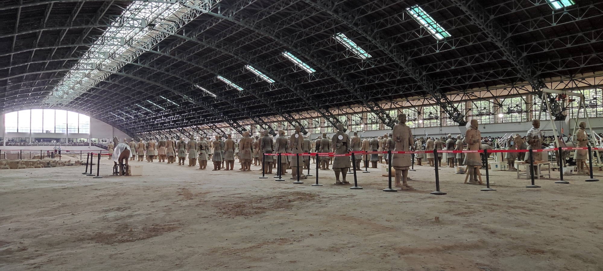 兵马俑博物馆人挤人。到底是人在看兵马俑,还是兵马俑在看人?想起了李连杰的电影《盗墓迷城3》……