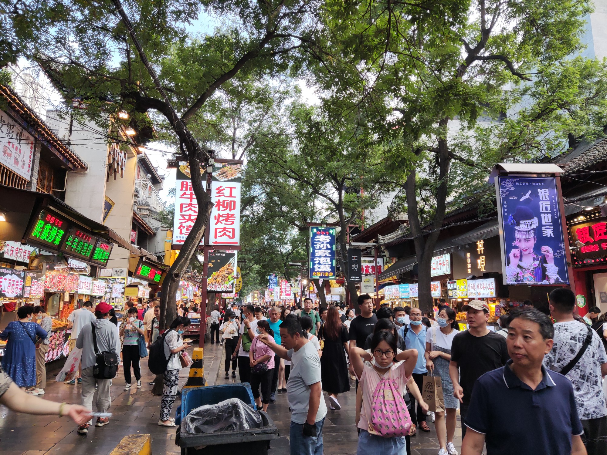 今天的主要目的,就看看城市。懒得上楼了。回民街也没什么特色,全都是。众人悉以为常的东西,出了饰品,就是烧烤、羊肉泡馍、饸络……