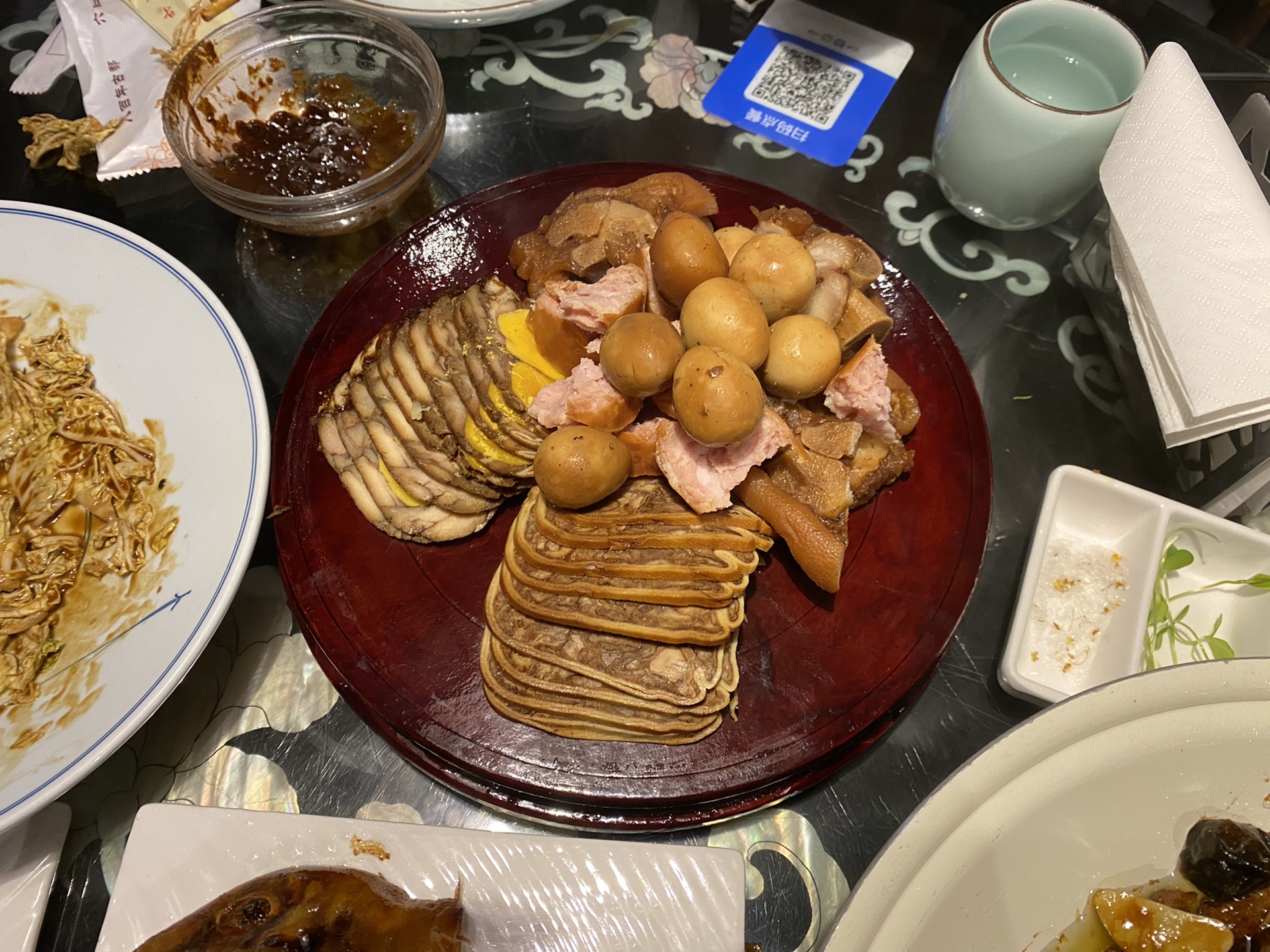 晚上本来要去四季民福烤鸭,怎奈何打了十来家店的电话,都是要排队一个多小时,后来决定去便宜坊。还不错,点的有点多没有吃完,乾隆白菜,溜猪肝,烤鸭,笋,面,锅贴,最后的熏酱拼盘。