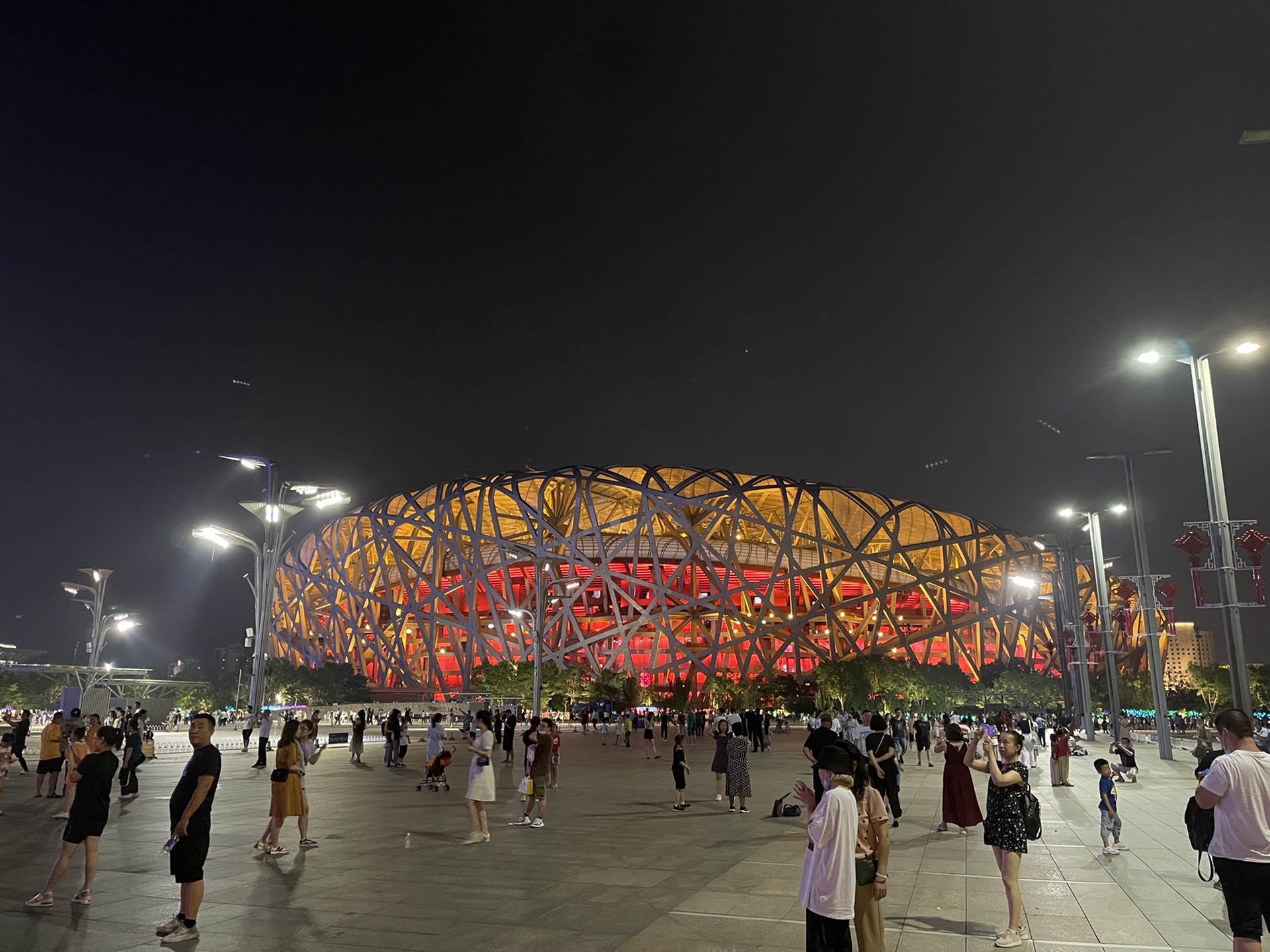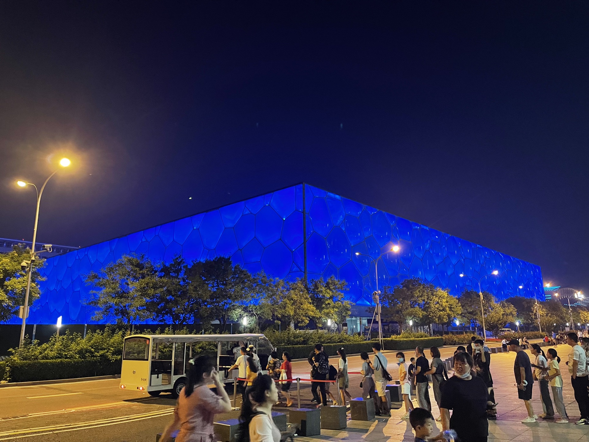 晚上打车去鸟巢水立方看夜景,鸟巢九点半熄灯,水立方十点,还好我们九点二十多到的,都看到了
