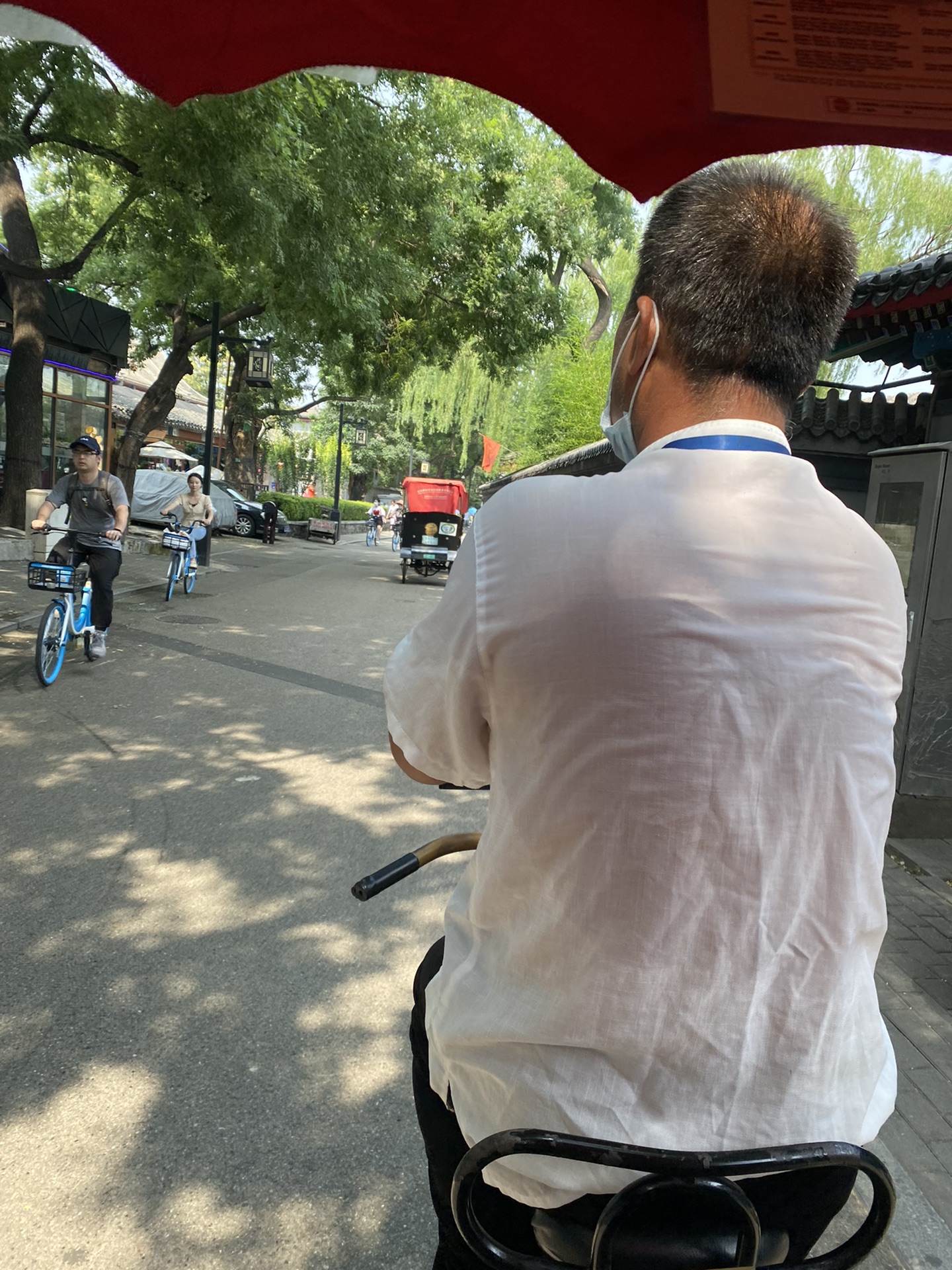 从故宫北门神武门出来,就有叫嚣着去南锣鼓巷和什刹海的旅游巴士,买了去什刹海的票等了会车,车上有简单的介绍,什刹海不远,十来分钟就到了。找了两辆三轮黄包车溜溜哒哒转起来,黄包车师傅讲解很赞,大热天汗流浃背的,半个多小时两百多一个车,下车就路过恭王府,门口排满了人,就此别过什刹海,回酒店歇。