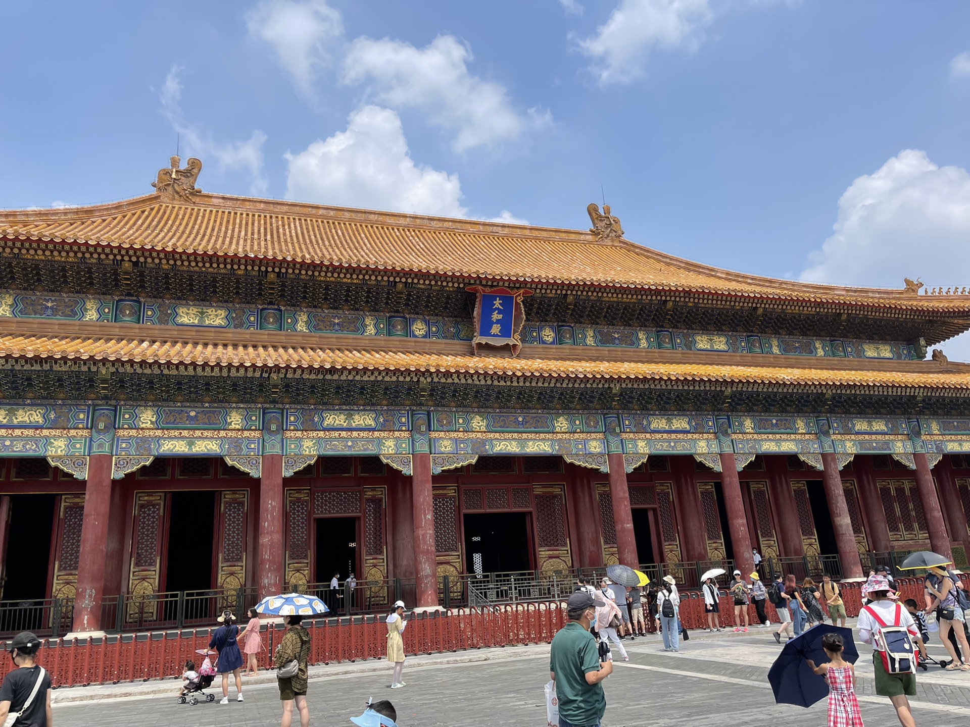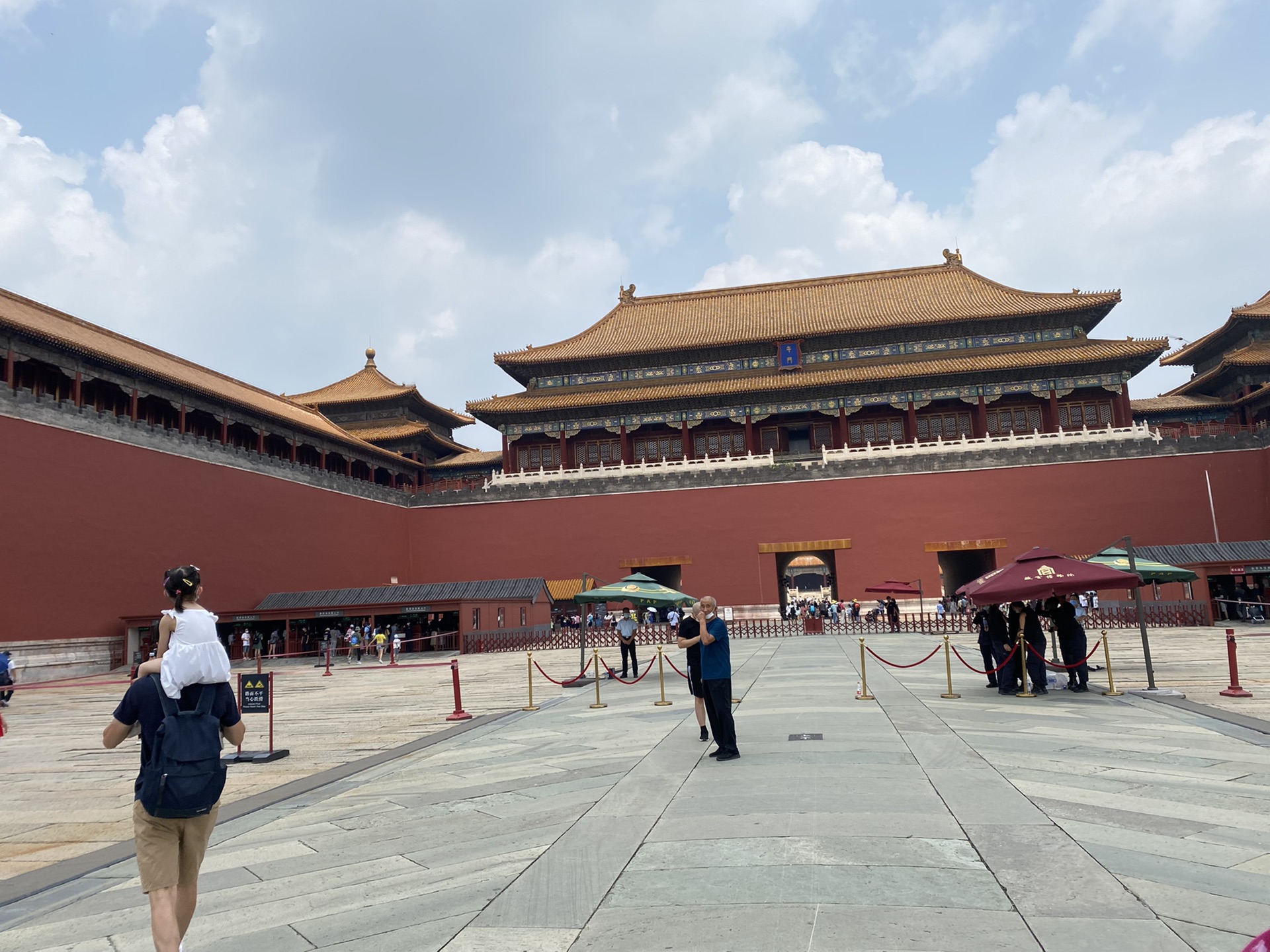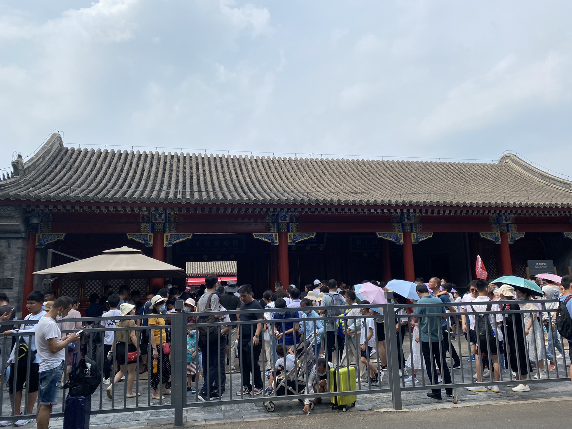 第四天 重头戏故宫。故宫门口不能下车,天安门附近不能下车,我们就打车到了故宫的北门神武门,准备从这进去,哪知此门只出不进,搞了个大乌龙。这里要说下北京的滴滴师傅太不地道,听我们在聊着去故宫也不告诉我们这个门不让进。害我们又打了个出租车到了东华门,东华门下车还等走十几分钟才能到故宫正门,天气炎热太阳贼大,进了故宫,俩小家伙最开始还听了一下讲解(租的),后来热的只发脾气,只想快点回酒店,吃了冰棍后才稍微好点,故宫里的冰棍可真贵,最便宜的十块。这天的故宫没安排好,天安门也没去。因天安门附近交通管制都不让停车,坐地铁公交,或打车到最近地方下车再走,一般都要走十来分钟。