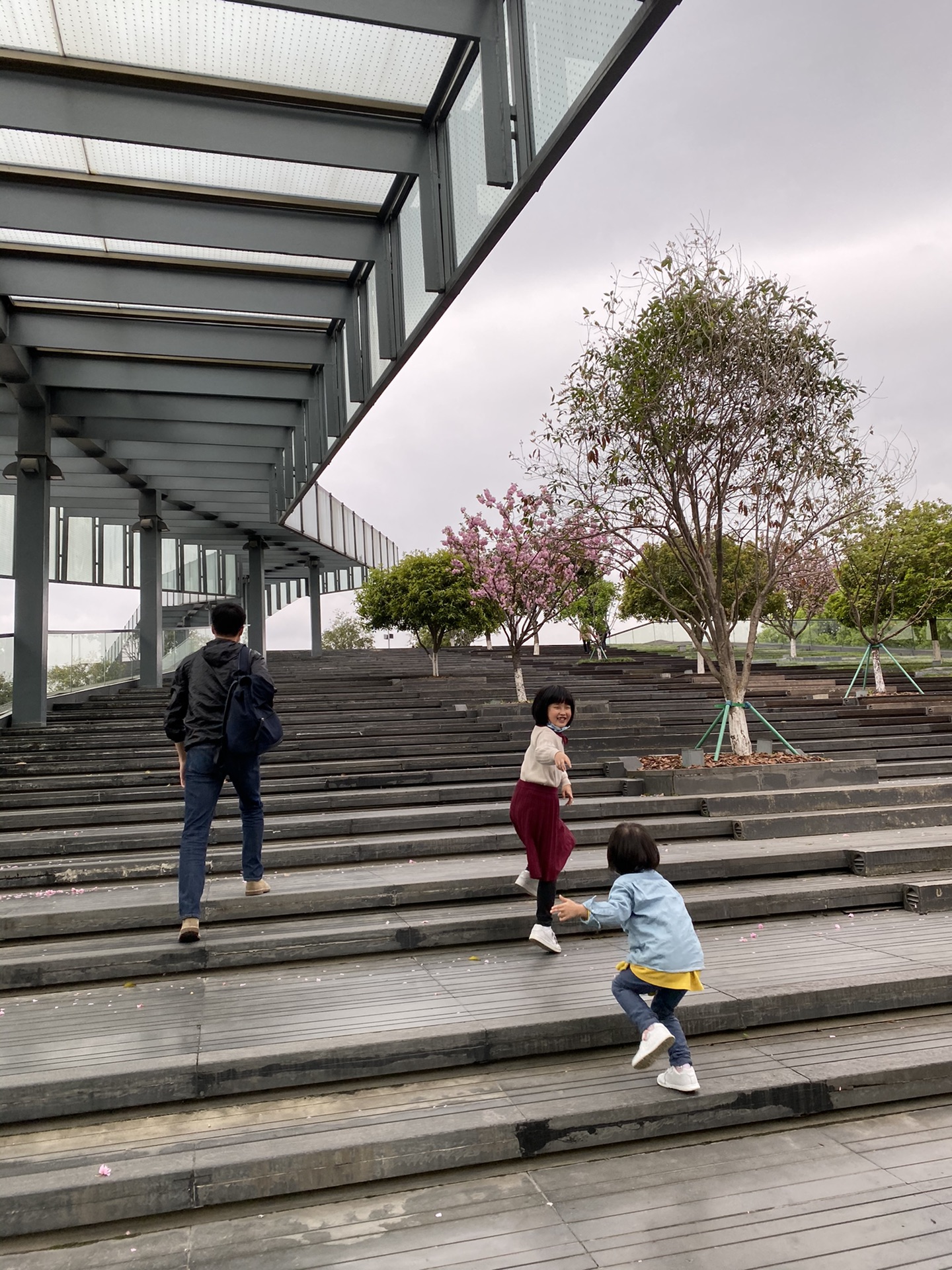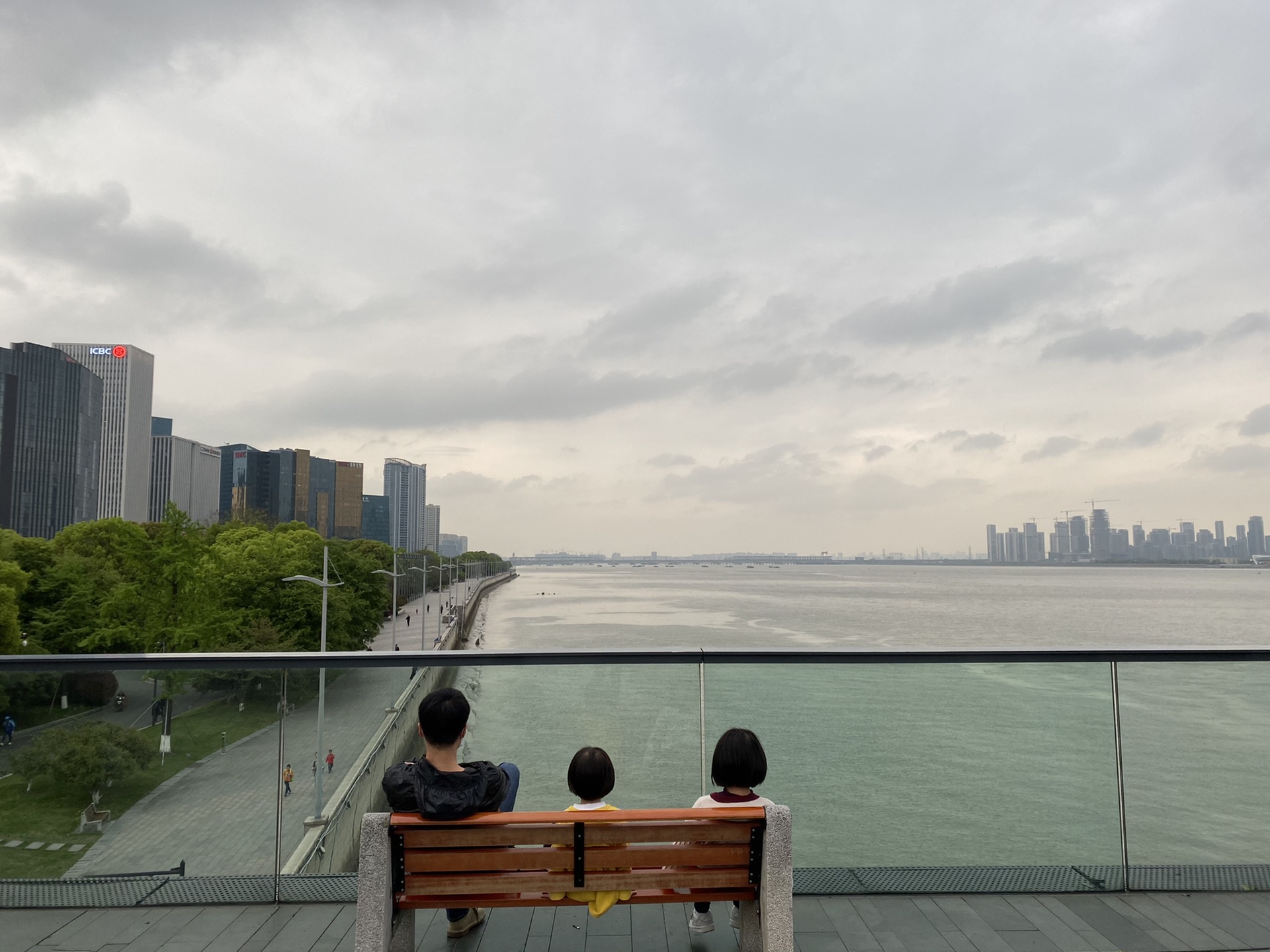 在西溪逛了两个多小时,就坐地铁去城市阳台了。这是一个比较惊喜的地方,开阔人少,风大舒服,可以看到钱塘江,我们慢悠悠地走,俩娃飞一般地跑来跑去。