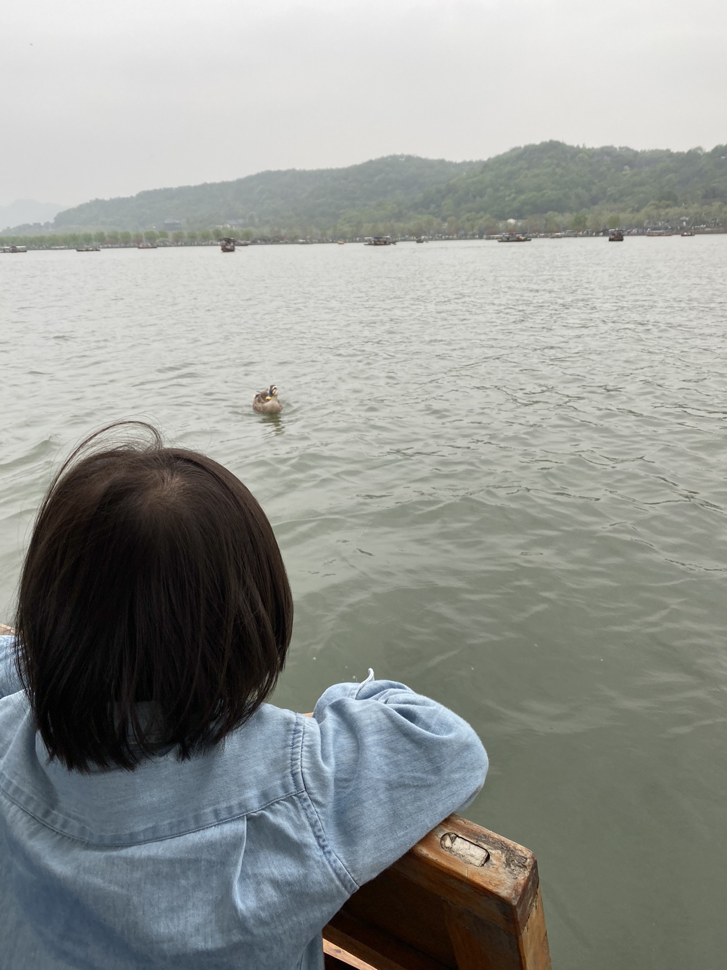 酒店稍作休息,就出发西湖了,住的地方离西湖不远,我们跟着导航一路走慢慢晃。小朋友很想坐船,我们租了个手摇船在湖上小范围的游了半个小时,摇船师傅会有简单讲解,挺悠闲自在,湖里有两只鸭子一直跟着我们的船,给它们喂了好些好吃的。