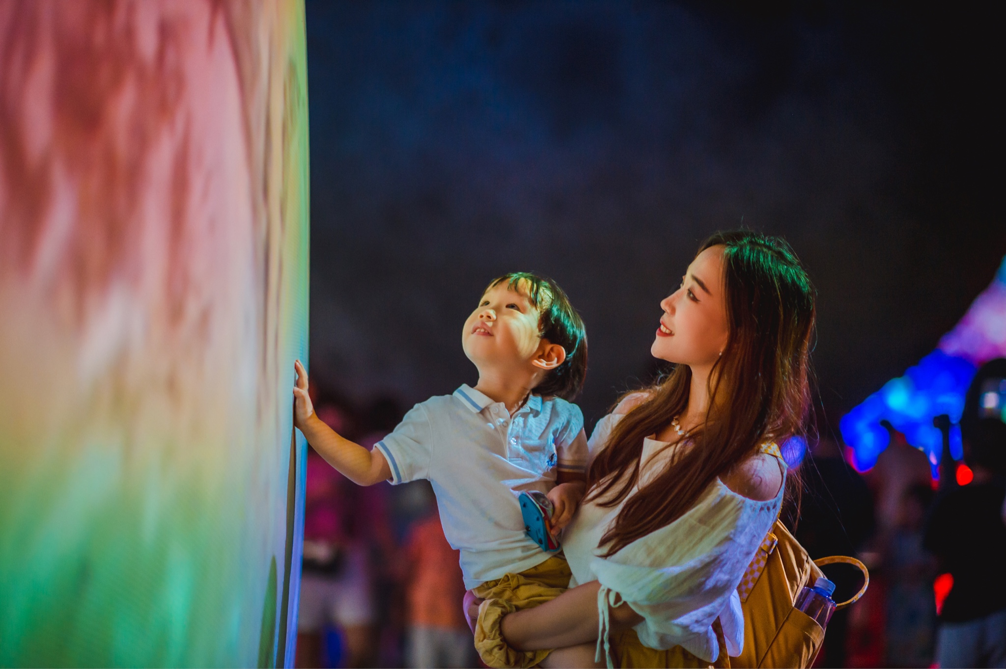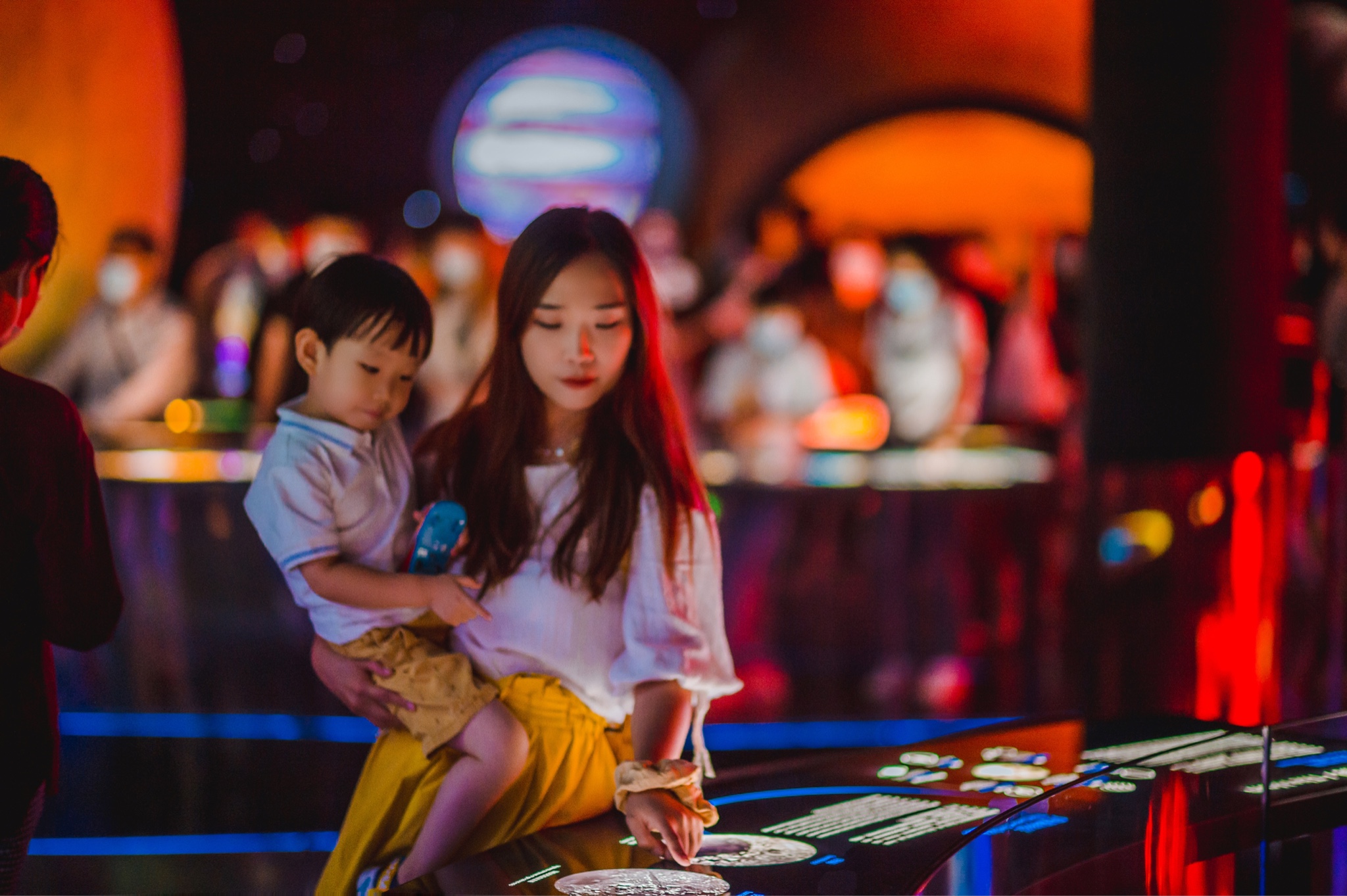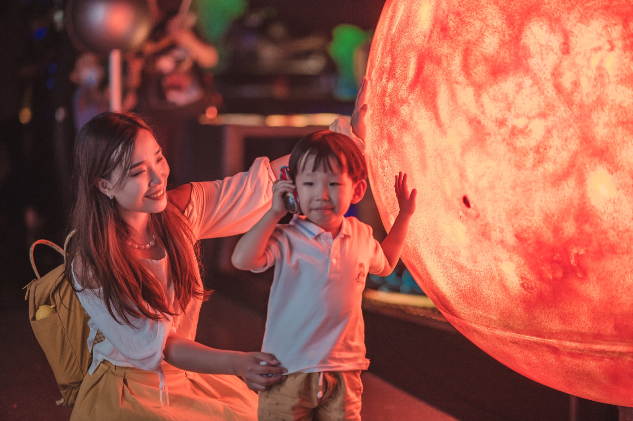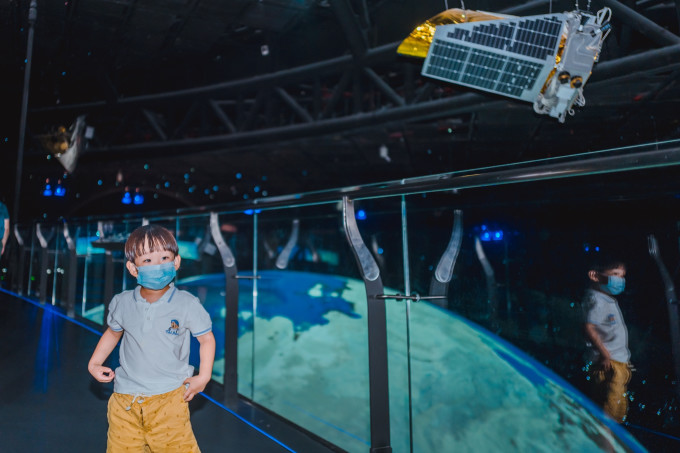 这里通过宏大的沉浸式场景和仿真模型还有各种极具视觉冲击力的多媒体影像打造了一个可以亲手触碰的星空。在这里,胖胖对地球充满热爱,对月球充满好奇,炙热的太阳也深深的吸引了他的注意力,好奇心让他不停的摆弄一切可以摆弄的按钮。整体设计互动感极强,如果人少一点,这里全景会更震撼!