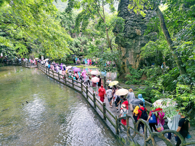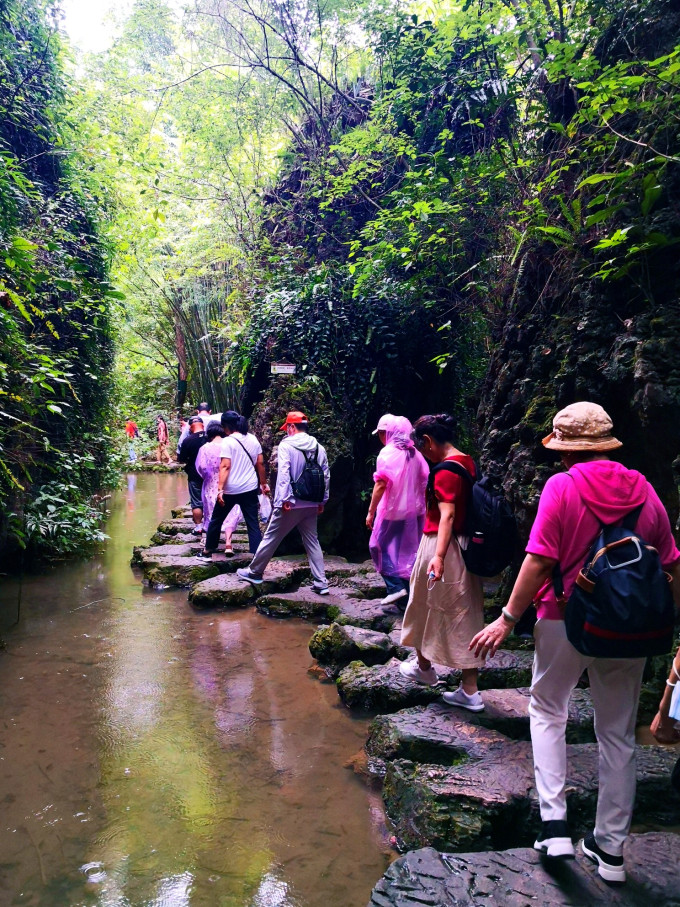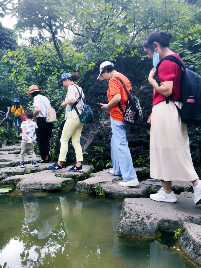 这里主要观赏石、树、水的美妙结合,是水上石林变化而成的天然盆景区。