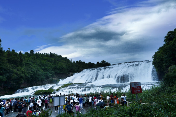 陡坡塘瀑布在黄果树瀑布的上游1公里处,