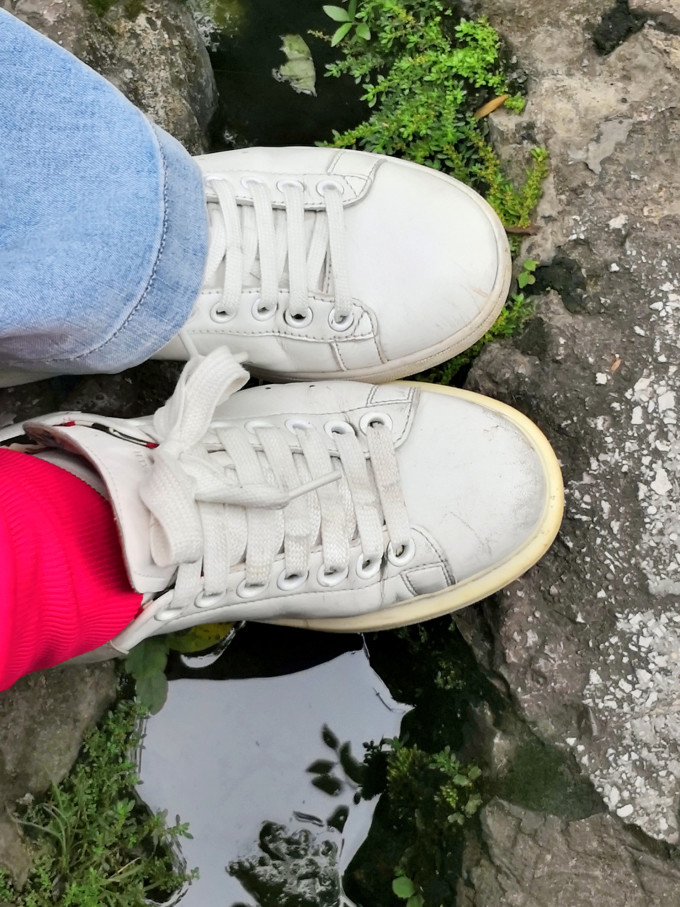 瀑布水流清澈,清秀妩媚。沿着和缓的瀑面,均匀地撒开,在一鳞鳞的钙华滩面上轻盈地舞着、趟着。。。