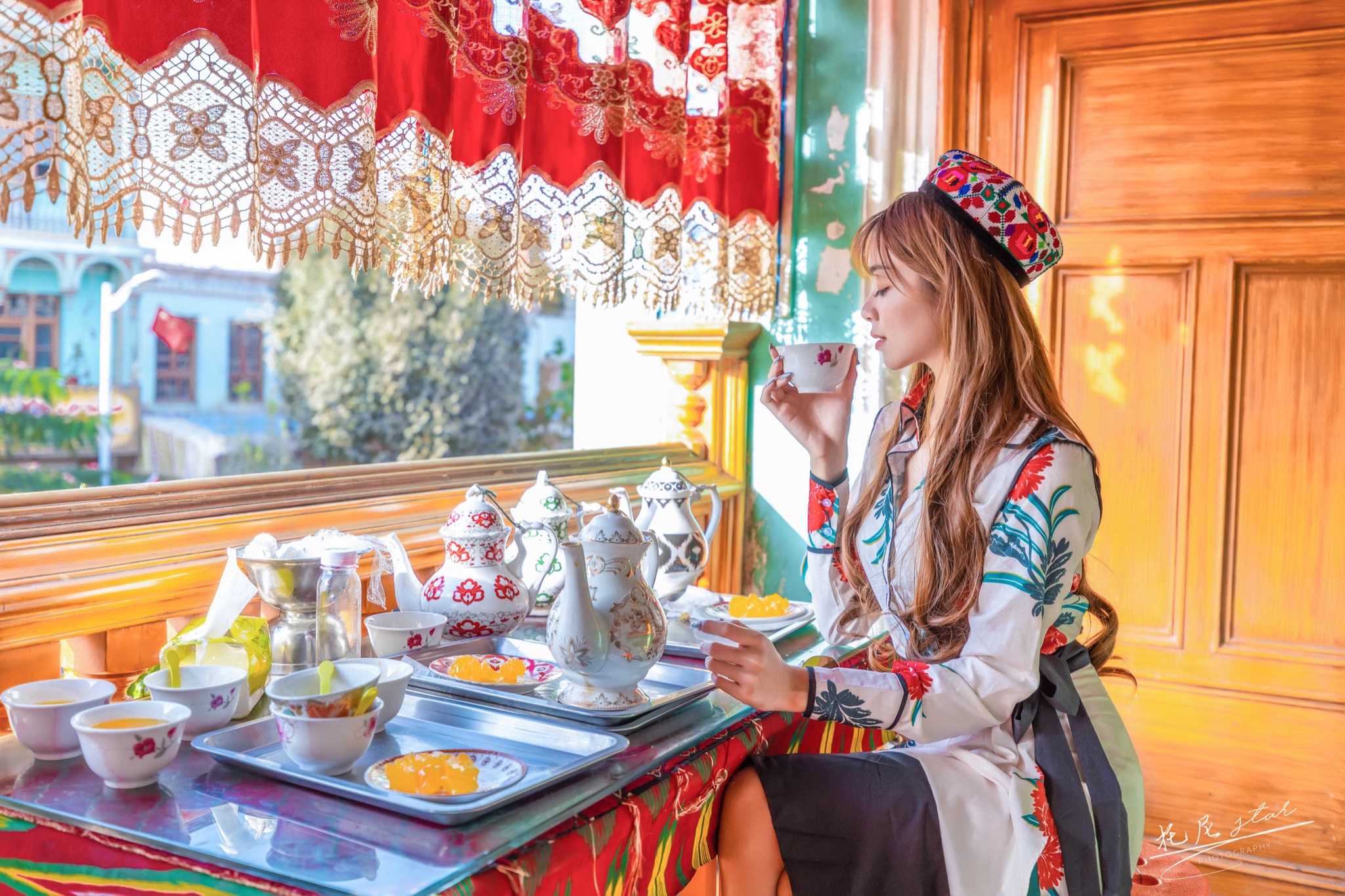 噶尔古城的百年老茶馆,属于网红打卡地,见证了喀什的百年变迁,茶馆都是当地常客三三两两的在各个角落聊天,现在老茶馆已经有很多游客的身影。茶馆每天都有弹奏木卡姆的维族大叔,点一壶茶,和朋友一起感受一下这里的氛围,是午后消磨时间的好去处。