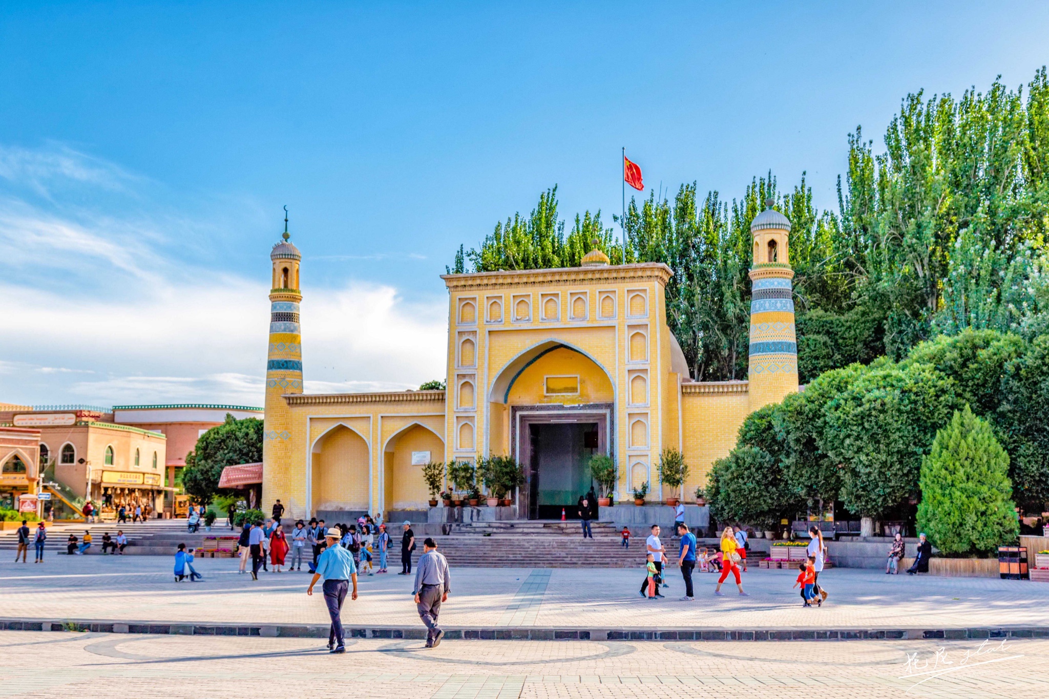 艾提尕尔清真寺位于整个古城的中心位置,好像把古城分割成两块区域。不仅是新疆地区宗教活动的重要场所,在古代还是传播伊斯兰文化和培养人才的重要学府, 天山南北以致中亚地区许多教阶较高的伊斯兰教神职人员和学者都从这里毕业,其他还有更多的有影响的诗人、文学家、史学家和翻译家早年也在此受过严格的学业培训。
