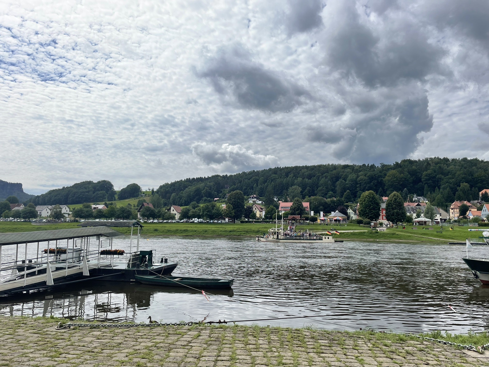 主要景点到这里就算是结束了,下面可以沿着台阶下山,不用走回头路。其中有一个岔路口,有个唱歌的艺人在这里用美声歌唱。在这里应该靠着右边走,一直下去就可以抵达Rathen小镇。小镇渡口可以坐轮渡赶往火车站,轮渡价格为1.3欧,乘客上船就立即出发,几乎不用等待。河面不宽,所以过河也只需要两分钟。
