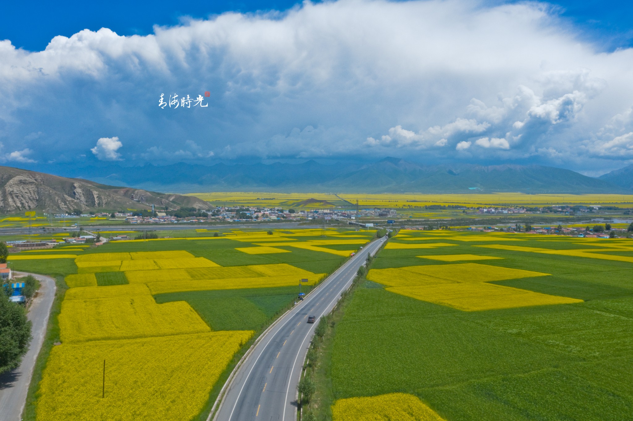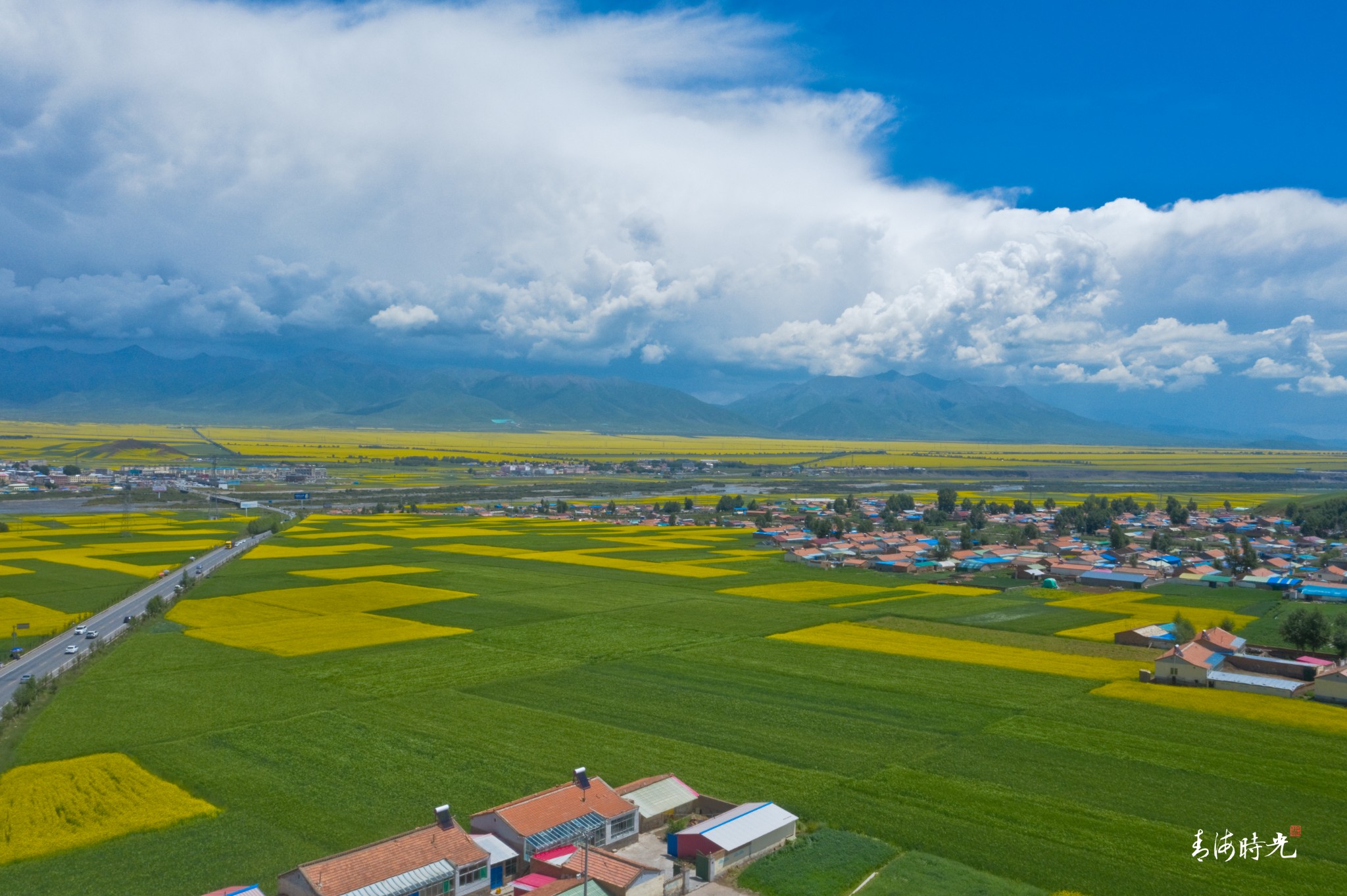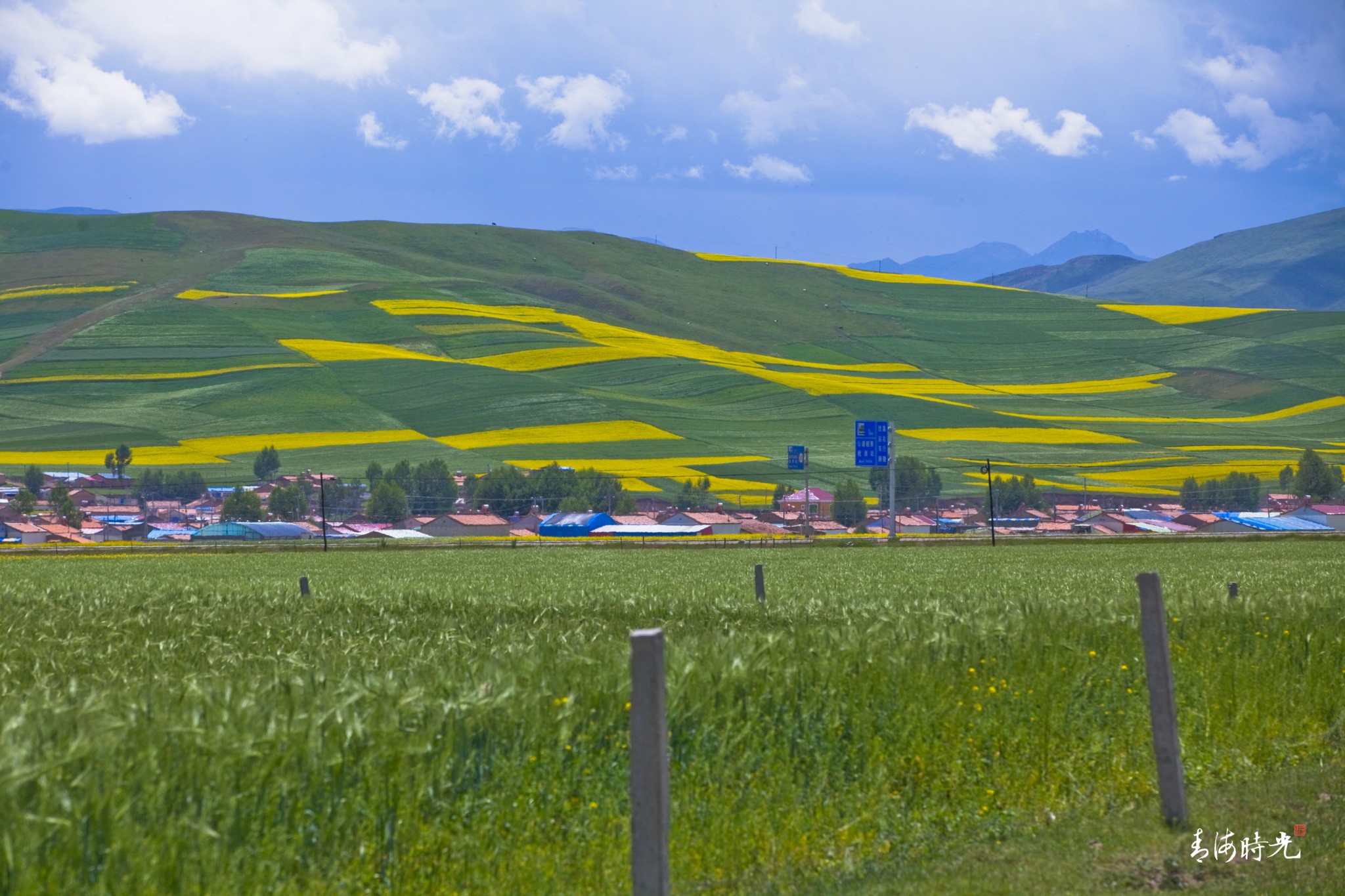 处处皆是金色的油菜花与绿油油的青稞组成的海洋