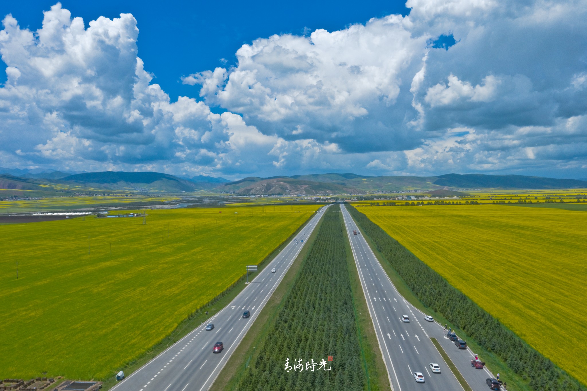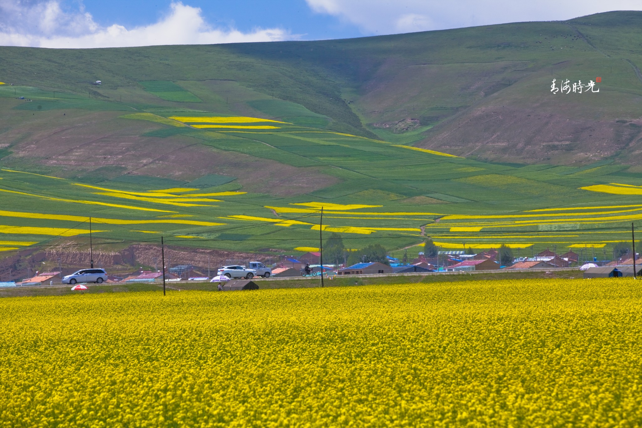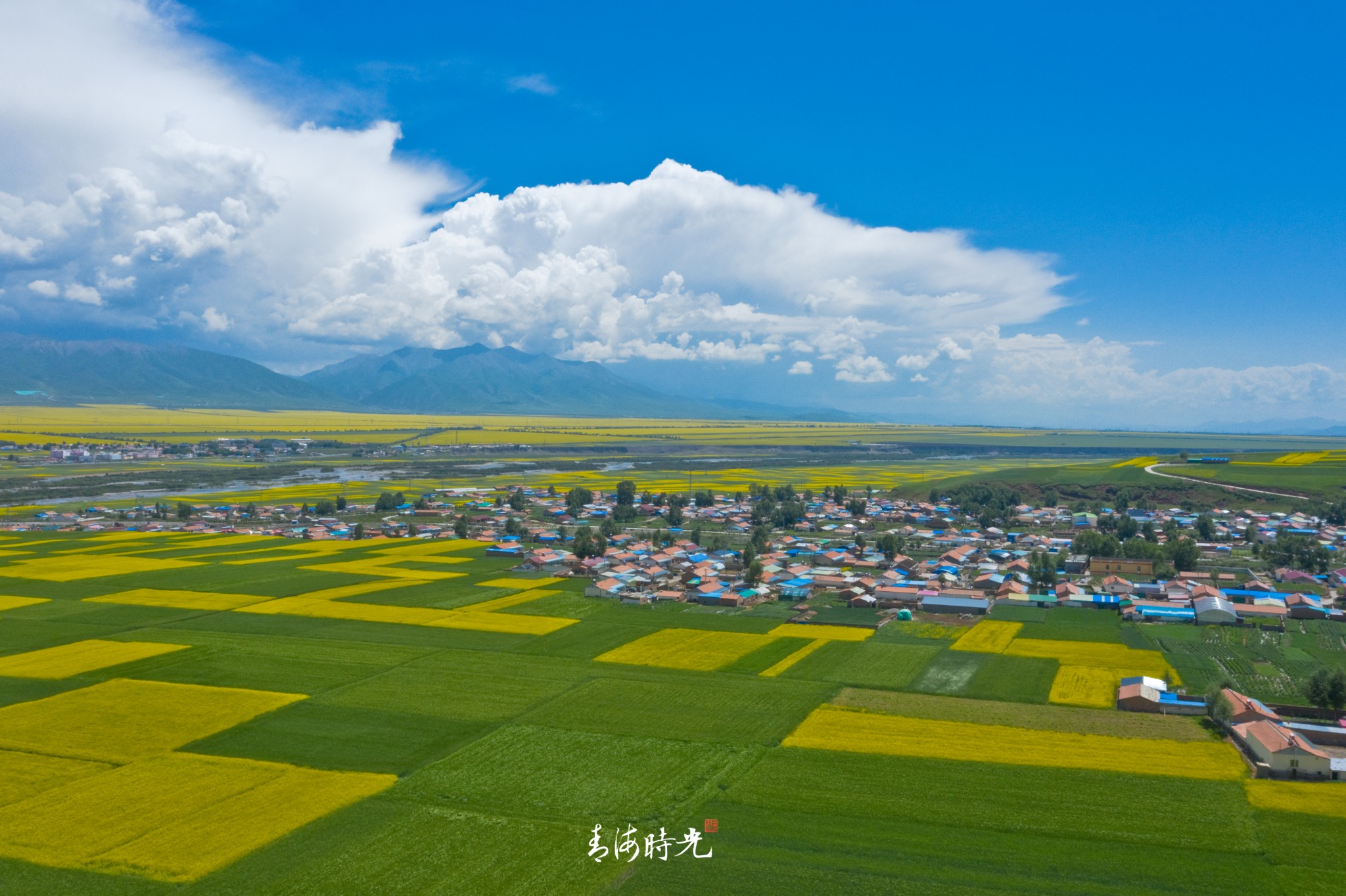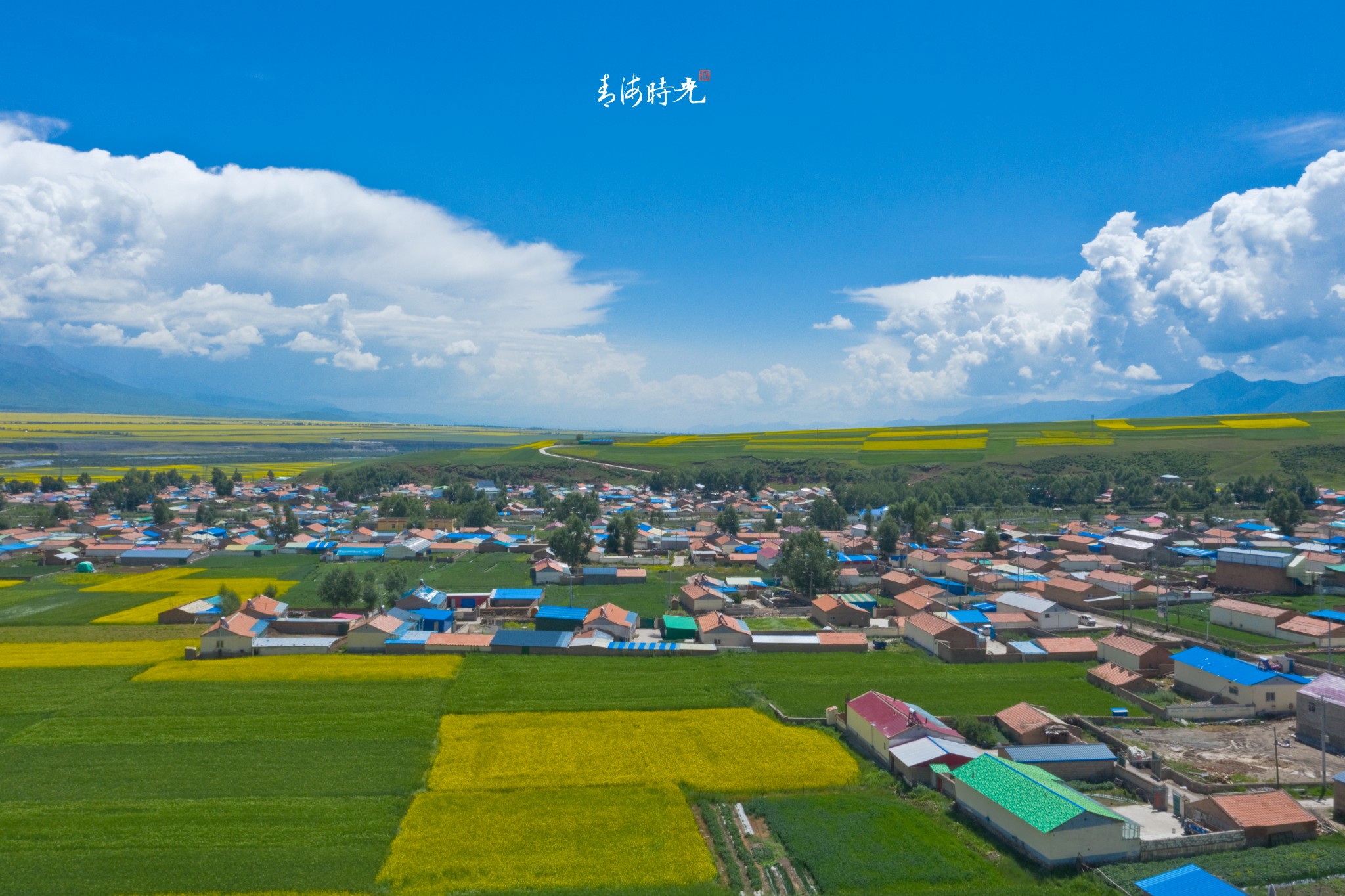 处处皆是金色的油菜花与绿油油的青稞组成的海洋