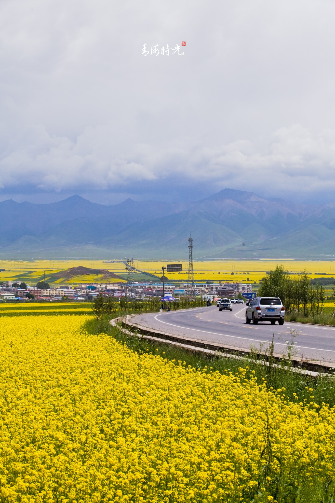 1、门源油菜花海的几个至高点位置:一是过达坂山隧道后的一个垭口(海拔3940米),有禁止停车的标志(仿佛提醒这是一个好的视角),另外不远下坡的位置有一处停车场(收费)+观景平台(据说免费);三是景区中心(售票中心)的圆山观景平台。以上几处其实都是人(车)满为患,后者还有一段爬坡栈道呢。
