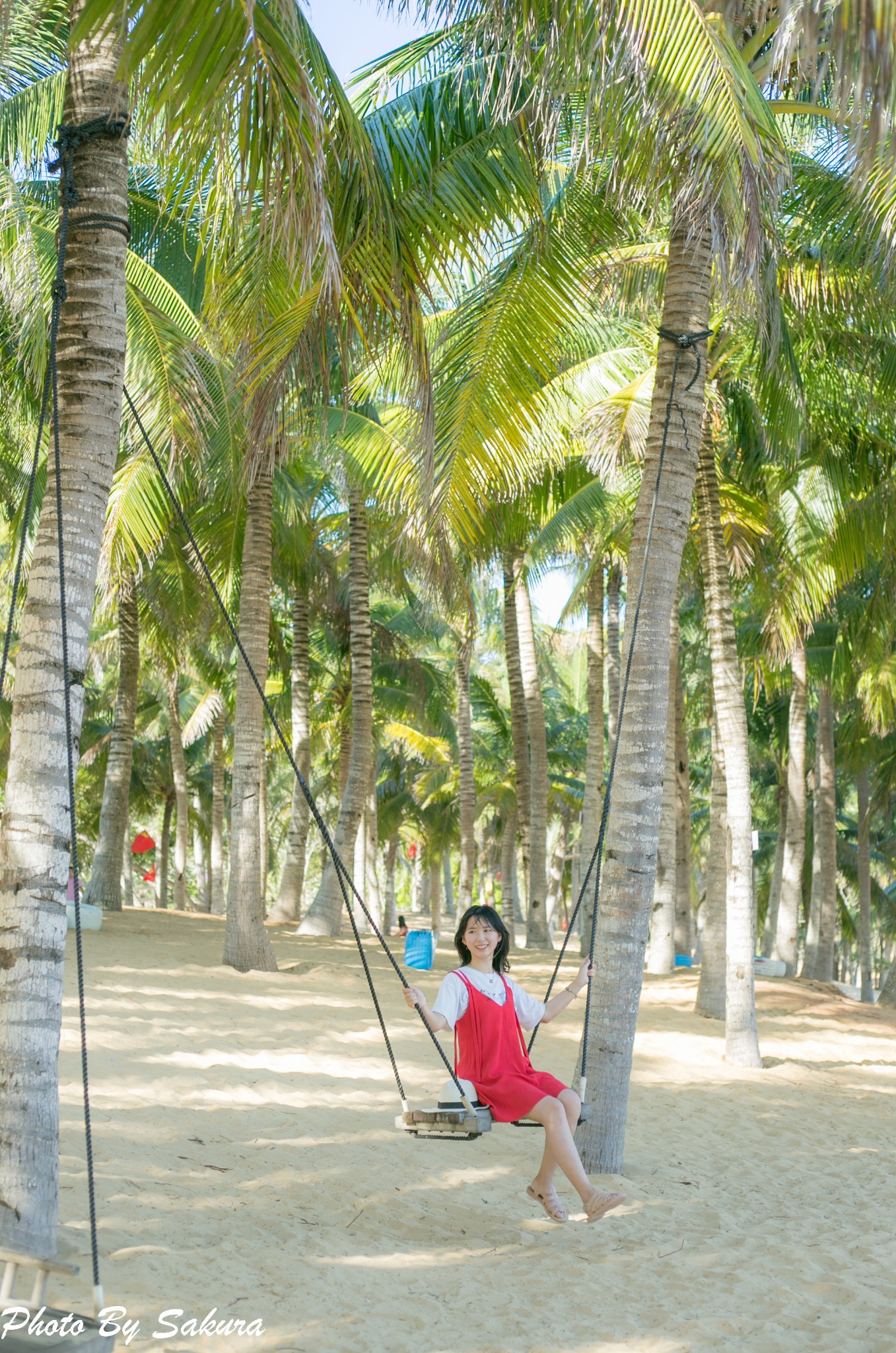 这里椰子树比较茂密,椰林里有不少的秋千、吊床,当我在拍照的时候,小朋友自顾自的玩耍,完美!