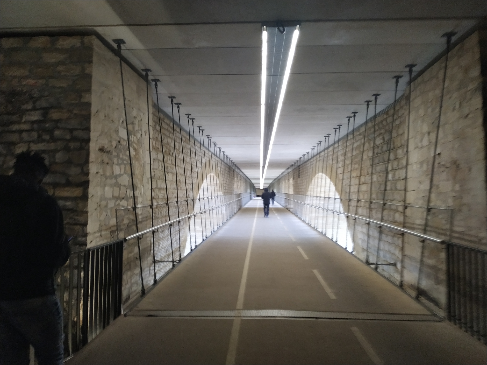 在本游记开篇的阿道夫桥上你可能看不到在石桥的下方其实有一个铁桥。就是下图。