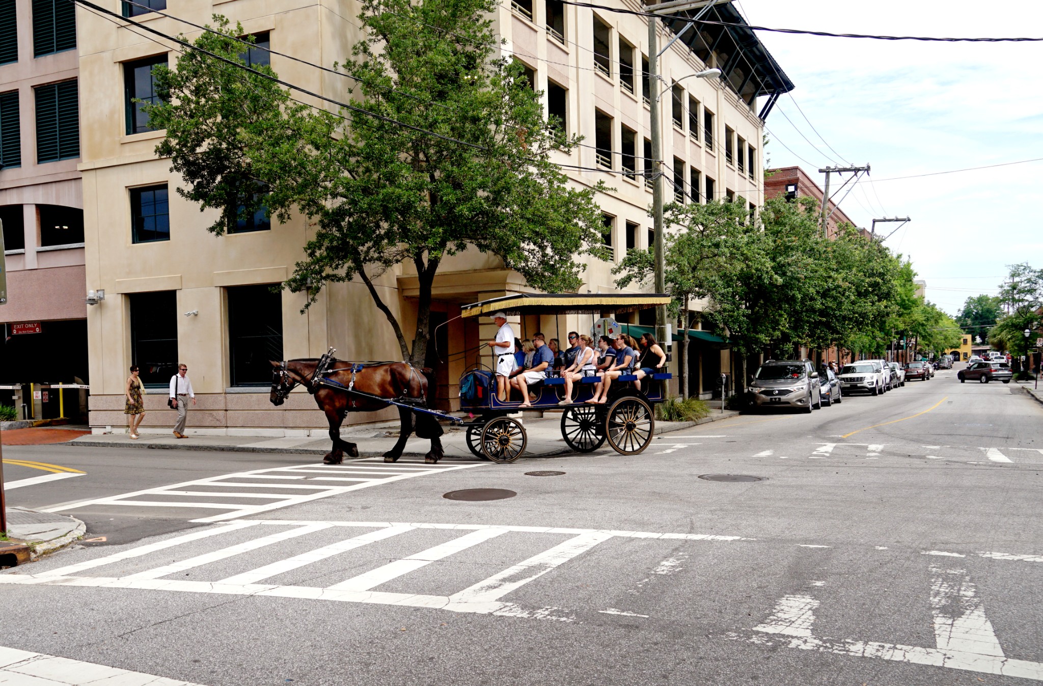 如此场景在查尔斯顿街头巷尾随处可见。一对老人牵着爱犬悠闲地散步,这也不足为奇,关键是街上怎么空空荡荡,如此寂静。