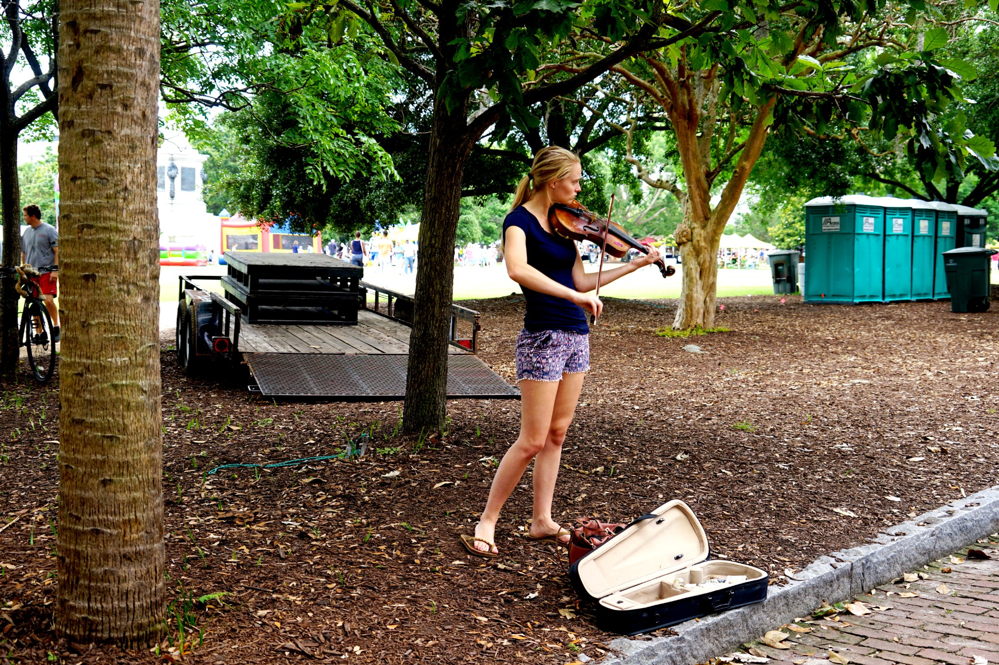 而这位小提琴手的优美琴声,与其说是博取施舍,倒不如说在给悠闲的生活增添艺术色彩,让人陶醉,
