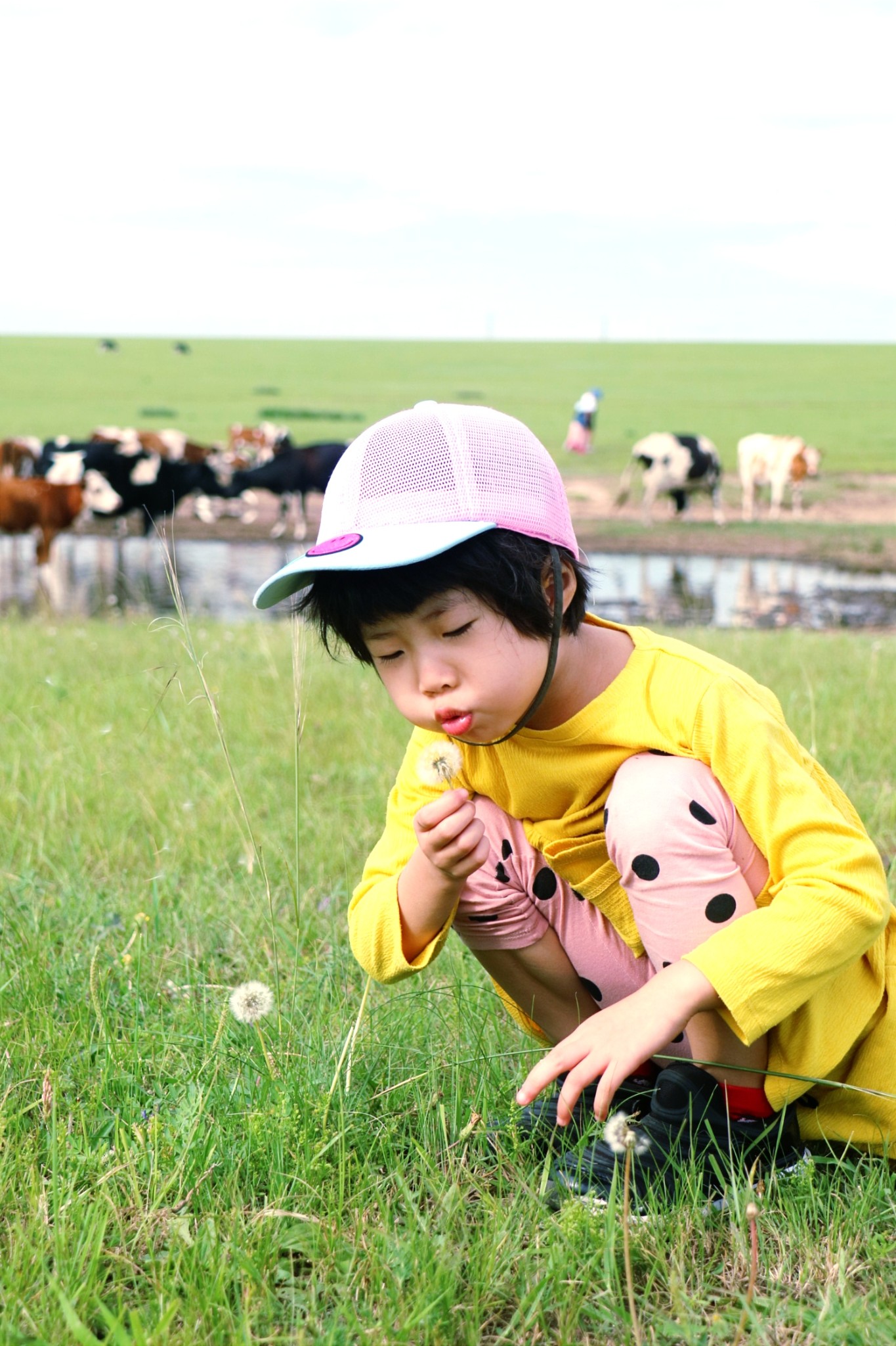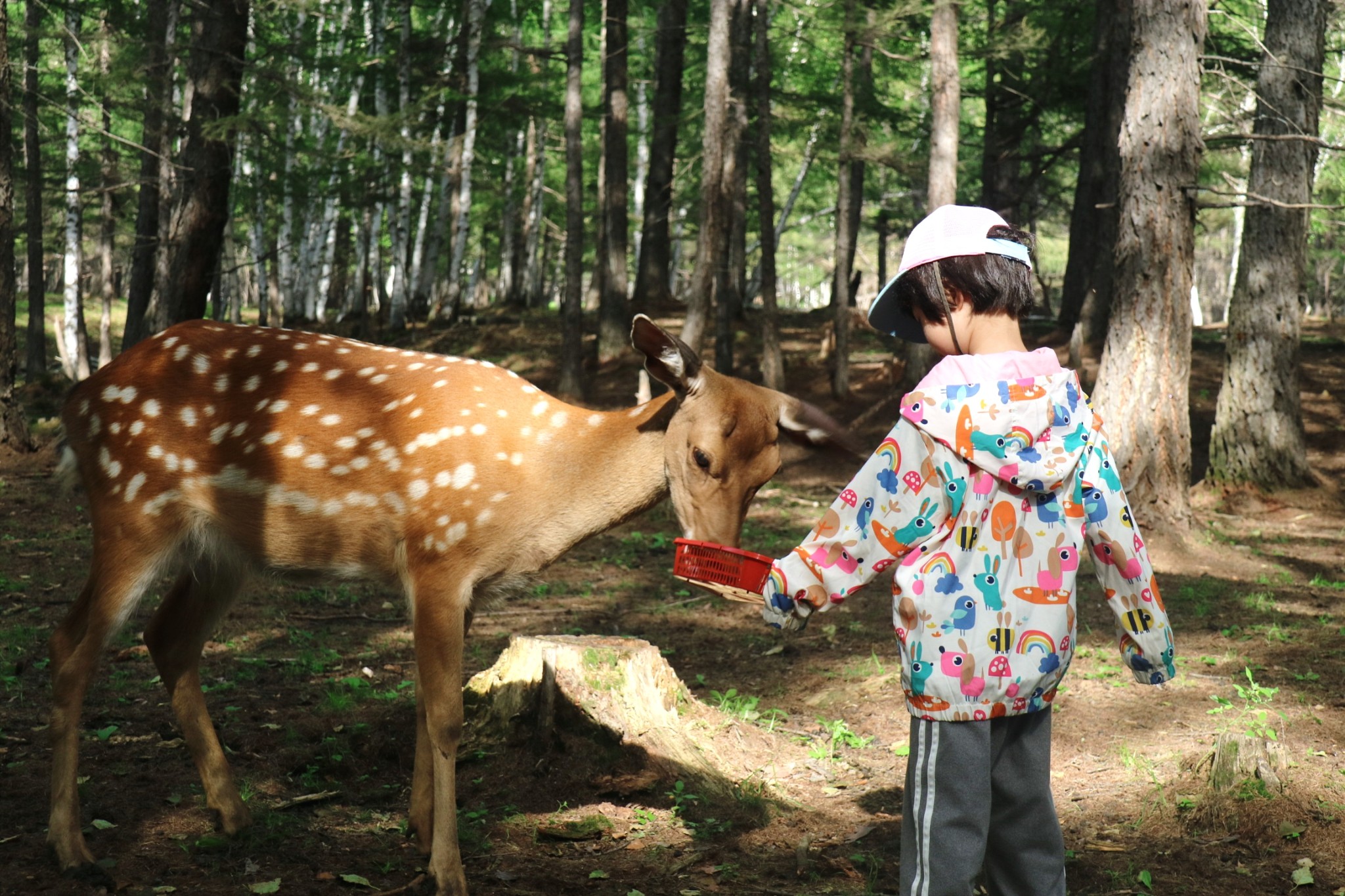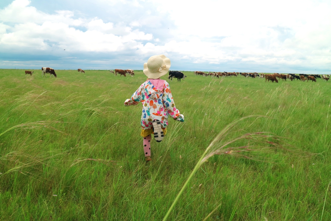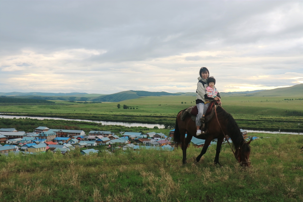 带着小朋友少不了和动物的亲密接触。阿尔山南侧的白狼镇有亲爱的客栈中的鹿苑,原本我们还计划去根河的敖鲁古雅的驯鹿部落,但是行程太远就只去了额尔古纳鹿园,结果看到的是无秩序旅游发展下可怜的驯鹿。不过在呼伦贝尔的草原上,最不缺的就是牛羊马,马是最漂亮的,而且蚊虫比较少,但是牛的性格最温顺,可以靠近可以追赶,而羊群还是不要追赶,会被当地人骂的。另外带娃爬黑山头看日落,玩草垛子,摘树莓,吹蒲公英,骑马都很亲子。
