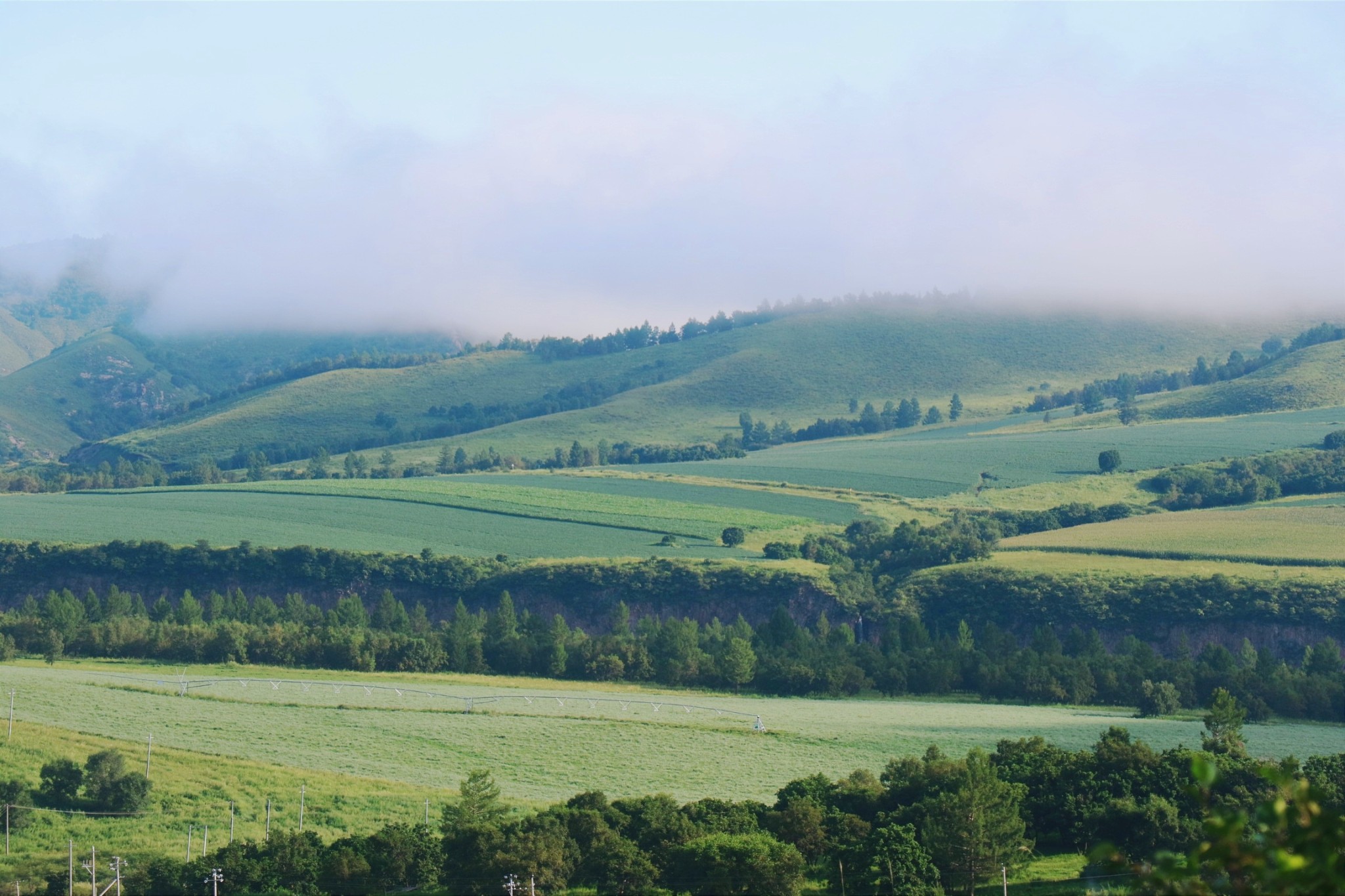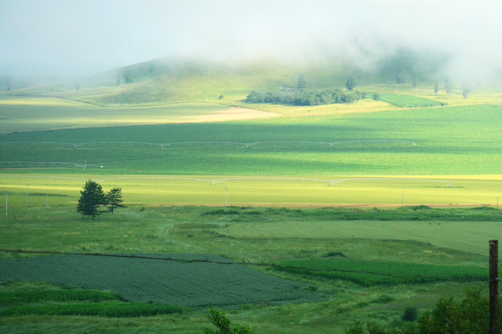 一路走下来,柴河附近的绰尔河沿线和边防卡线最美,尤其是晨雾时分,阳光穿过云雾间洒落的光影,给原本平淡的山林农田带来一丝神秘的氛围,清晨出门又不用担心路上的车流,可以任性的随时靠边停留,完全不输于南法的田园风光。