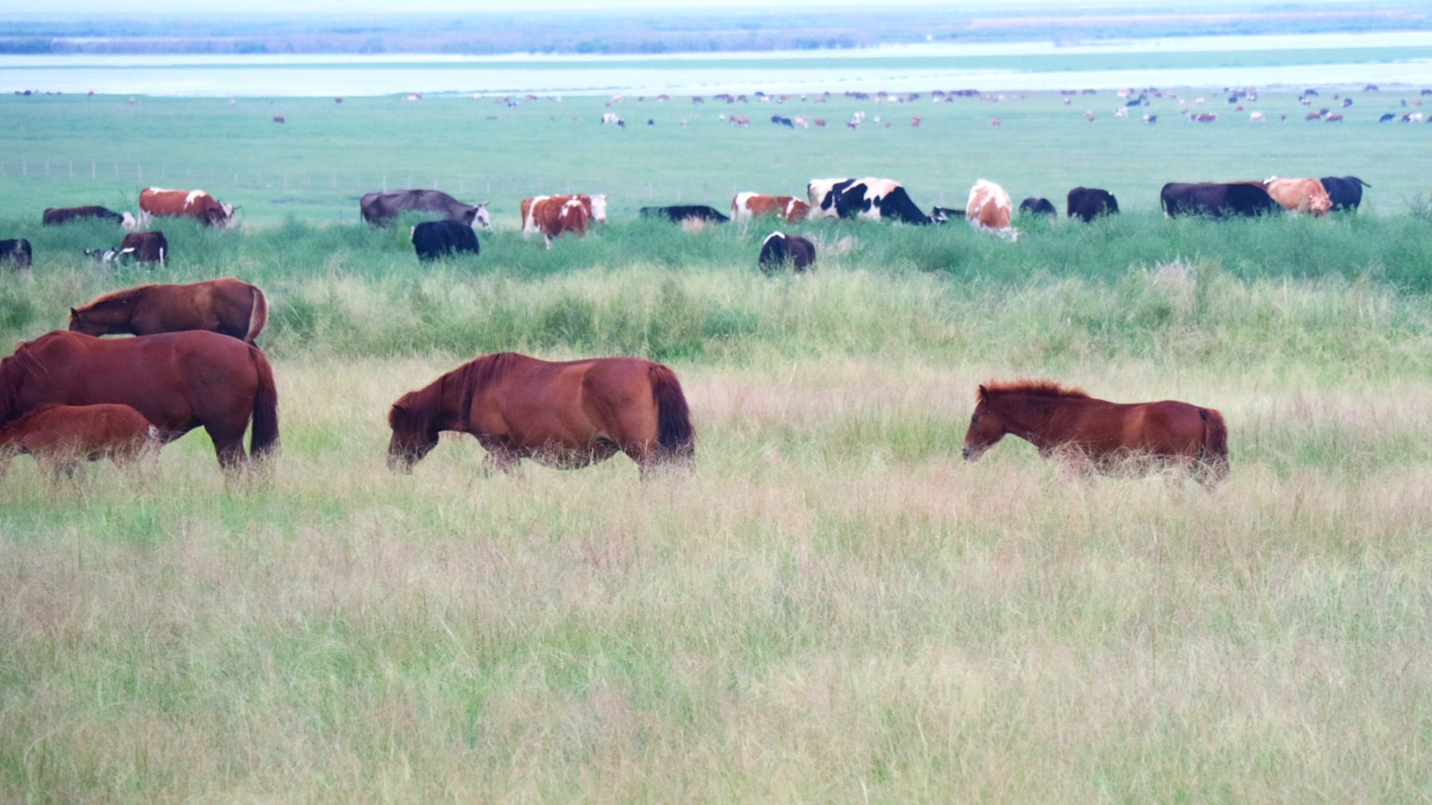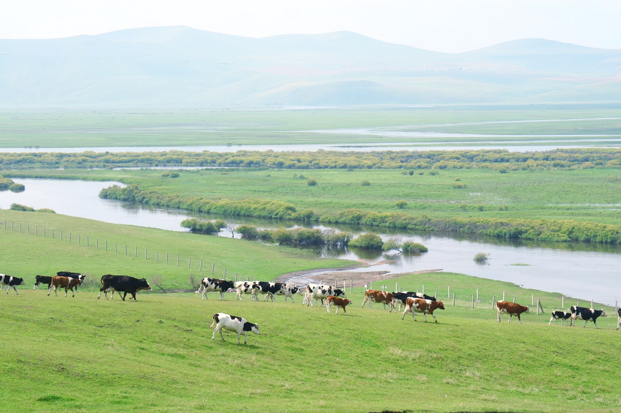 呼伦贝尔大草原没有带来更多的意外惊喜,相比川西草原,这里的地势更平坦,放牧物种大大多于高原草原。随着海拉尔的工业发展,在莫日格勒河上体验了呼伦贝尔草原的雾霾。全程印象比较深的是满洲里东南侧的通湖路沿线,起伏的山体配合上风车与牛羊,呈现立体的三维风光。还有黑山头南侧八大关附近的草原,配合日出的晨曦和撒欢的小马,也有别样的意境。