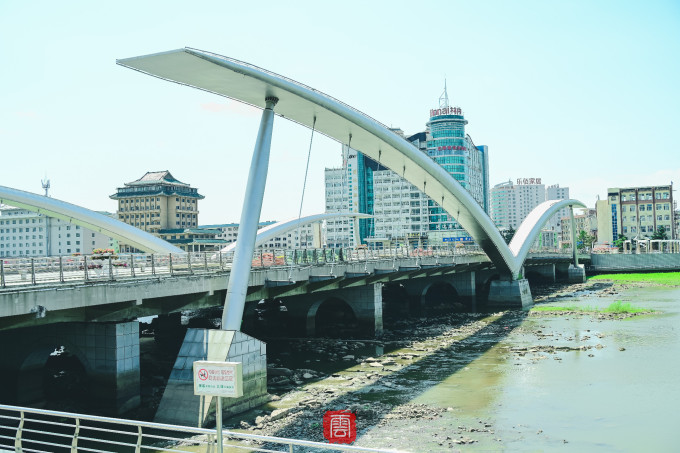 这是用长焦镜头拍摄的延吉大桥的标志,桥不是很明显后面建筑物反而明显了许多。