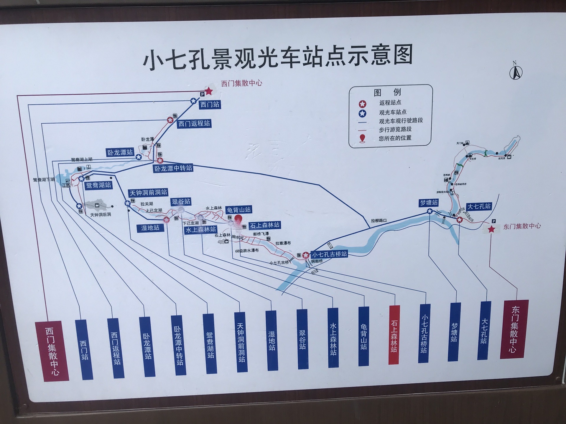 一早坐了8:40从龙洞堡客运站出发到荔波县城的客运汽车,110元/人,3个多小时车程,然后下车就有去小七孔景区的公交车7元/人,三四十分钟就到了。下车把我的大书包寄存到游客服务中心,5元/天很划算,存了2天,省下不少体力。