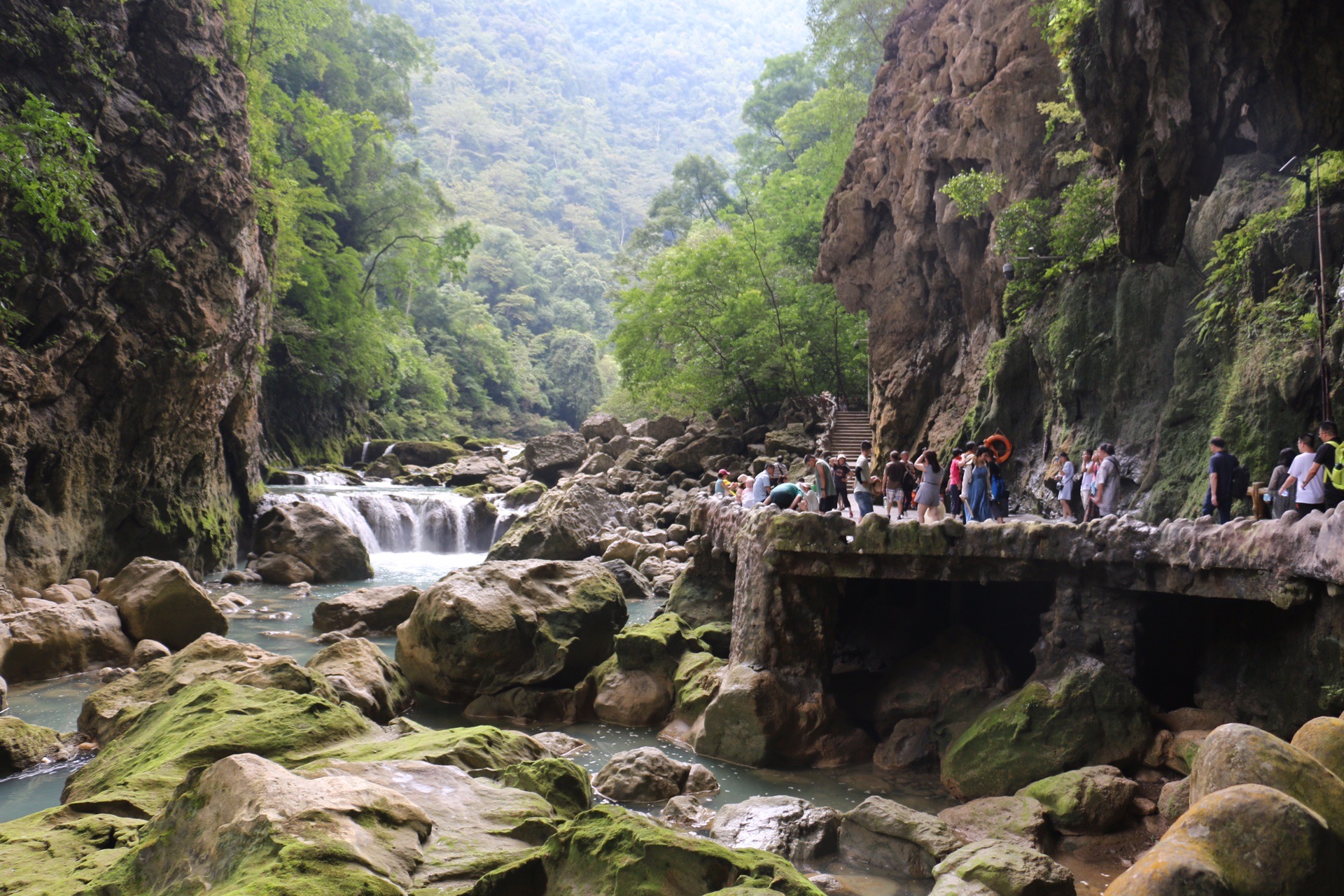路线分明,单行道一直走下去:天生桥——恐怖峡——妖风洞。