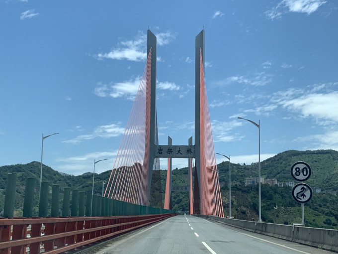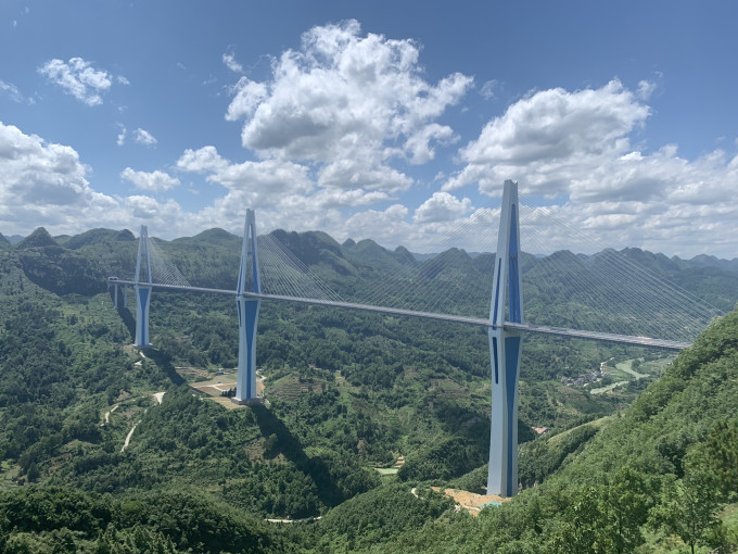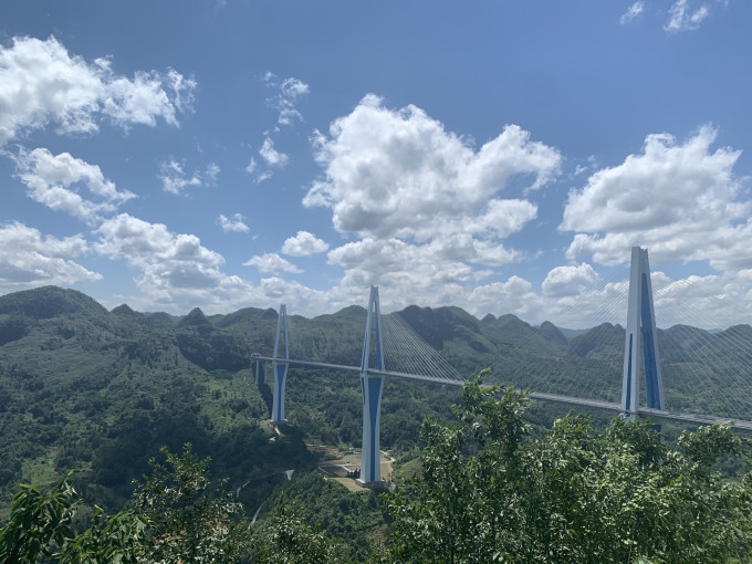 大桥在白云映衬下充满着科技感,蔚为壮观。