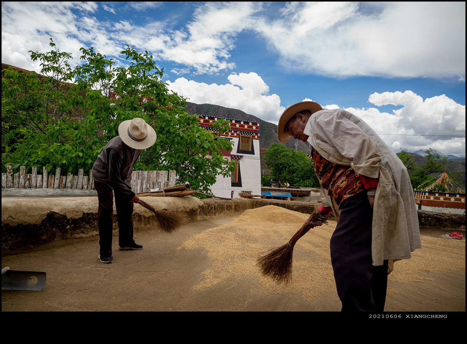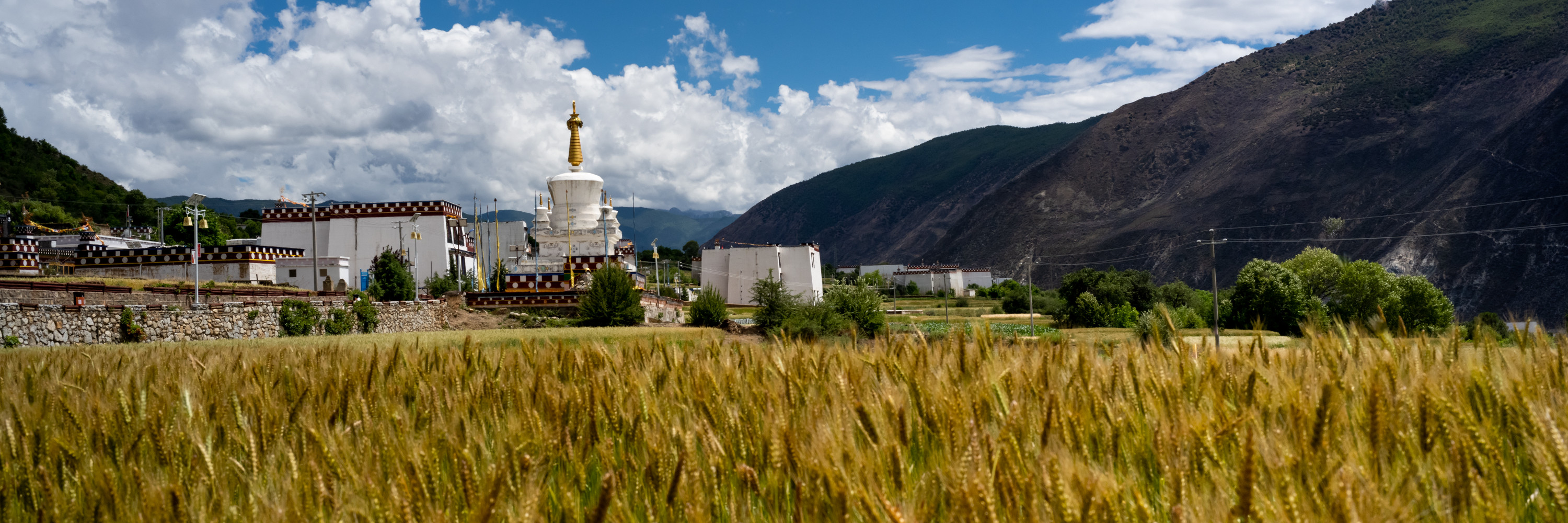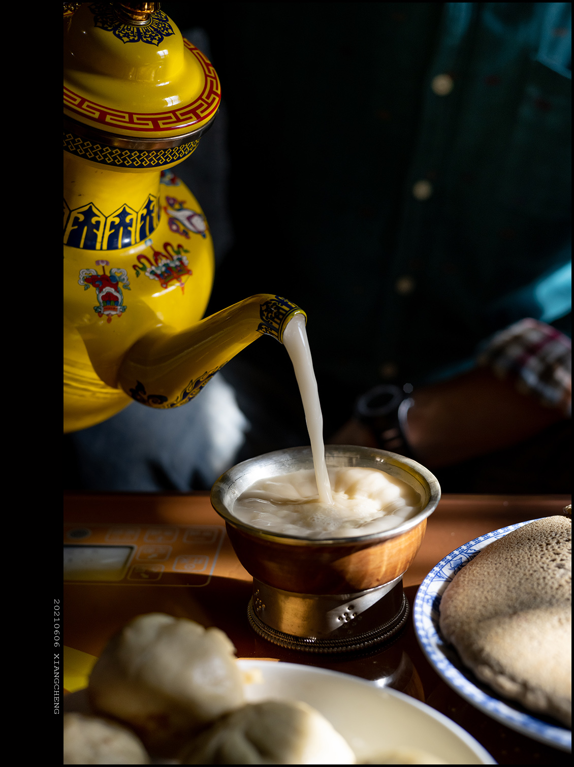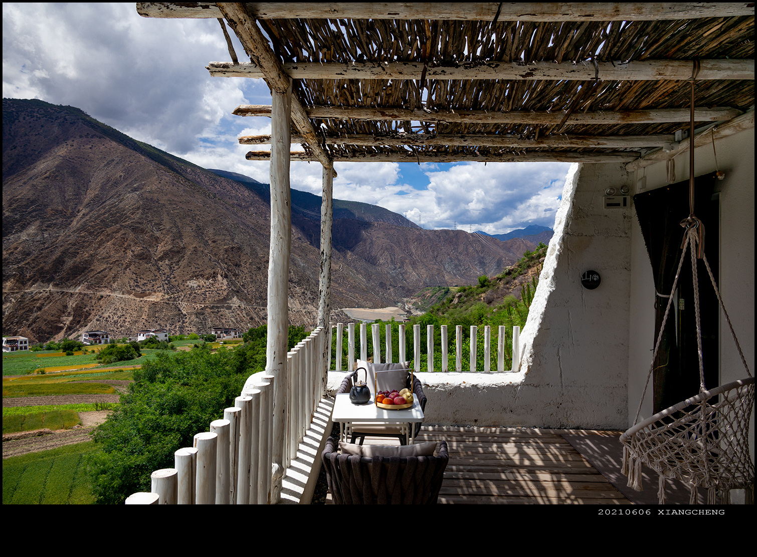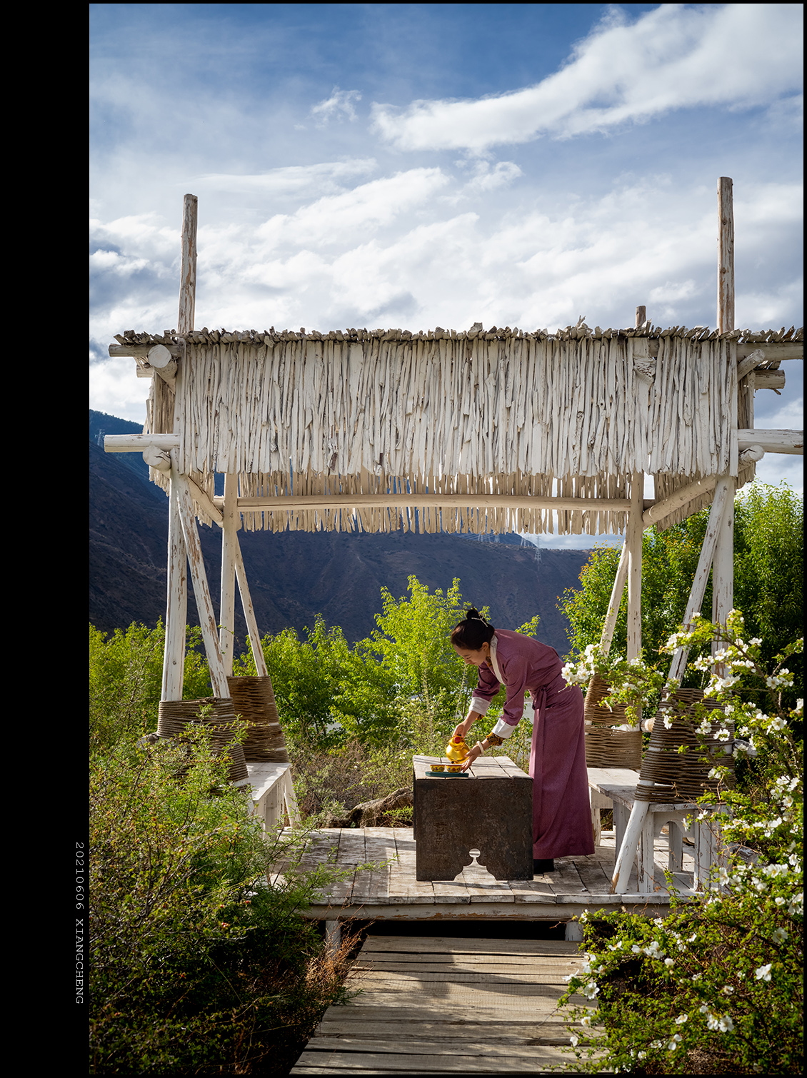 六月份地里的青稞已经熟透,麦子还在半青半黄的当口,玉米则长势正旺。所以村子四周色块分明,而皈院的所有客房都是以自然散落在村中的民居为基础修建的,开门见山,窗下就是田园。坐在门前廊下,赏风起云涌,观人间烟火,心中再烦闷,一个小时也散了。然后直奔餐厅,正宗川菜,松茸鸡汤,水煮牛肉,口味地道大快朵颐。午后阳光正好,可以跟管家预约去老乡家里喝酥油茶,不过老乡日常吃的糌粑和素包子啥的,就仁者见仁了,尝尝就好,别期望太高。