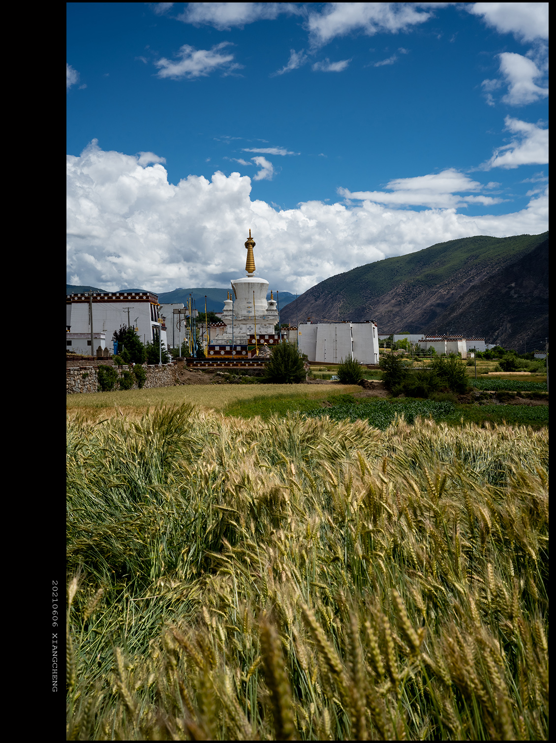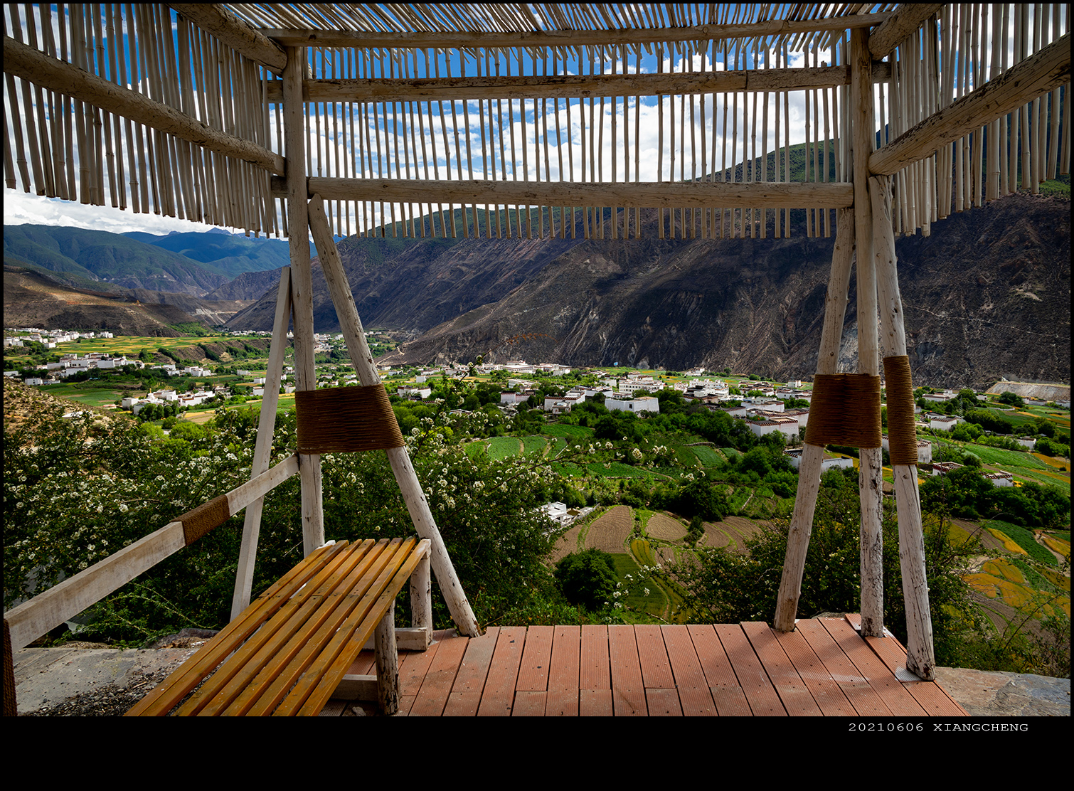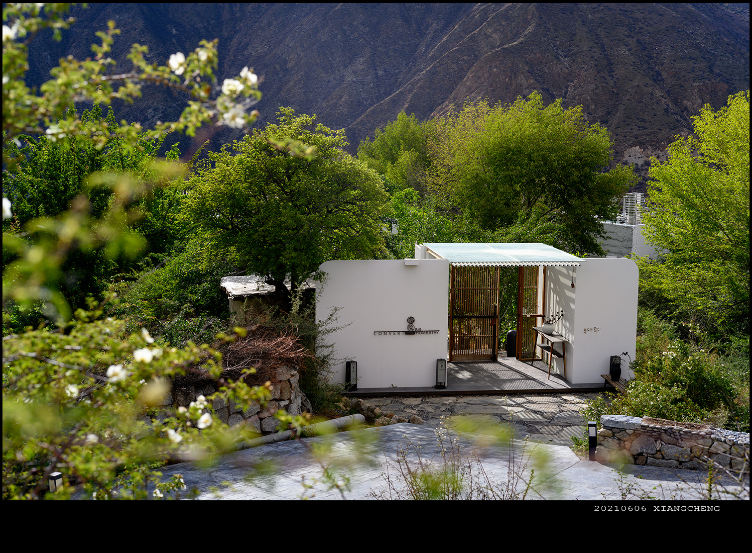 对于拖着拉杆箱旅游的享受派来说,乡城没什么缺点。交通便利,住宿条件优越,食物爽口,景色怡人。我住的这个仲德村,距离县城10公里不到,村里有一家装修格调颇有特色的民宿叫做“皈院”。乡城三个最有名的招牌之一就是白藏房(另外两个是当地特色服饰“疯装”和桑披岭寺),皈院的设计基础就是白藏房。当然客房肯定不可能真的弄成藏民家里那个样子,上下楼梯腿都发颤,乡亲们家里那个楼梯为啥要弄这么陡峭我很不明白。皈院的客房内部是很现代化的,连自动马桶都有,所以住惯了酒店的人完全不用担心,当然房价也不可能是乡民开的民宿那种三五百(具体价格可以实时在网上自己搜)。如果非要去住老乡家里也行,村里有不少真正的藏房民宿,不过我没进去实地考察。实际上这个地方看起来并不像是需要那么多民宿的景点,也许它还处于开发初期,我不确定。总之我在村里这几天时间除了看见一辆山西来的旅游大巴路过下来参观,基本没见到游客,而这个季节正是乡城最舒适美丽的六月。