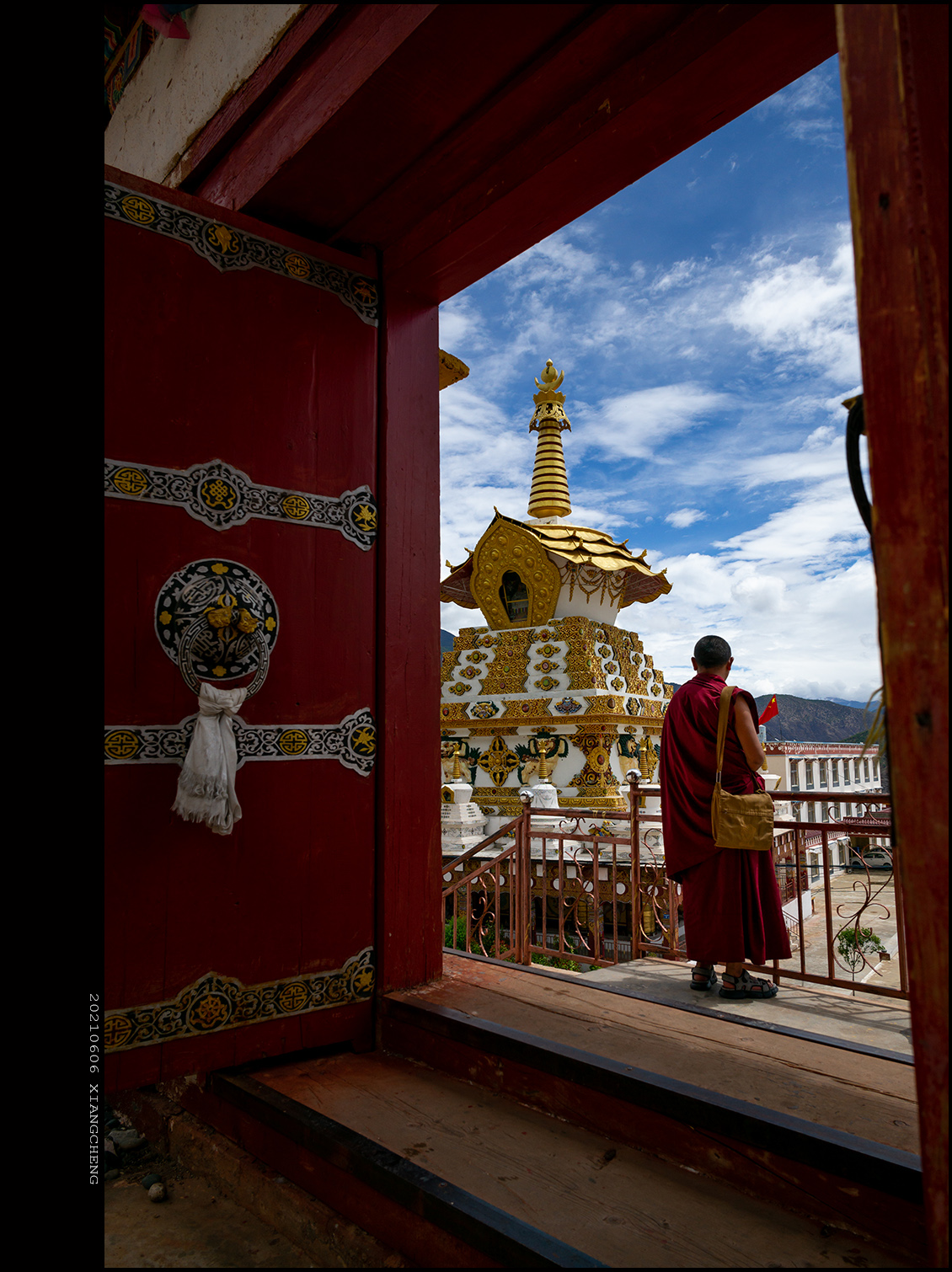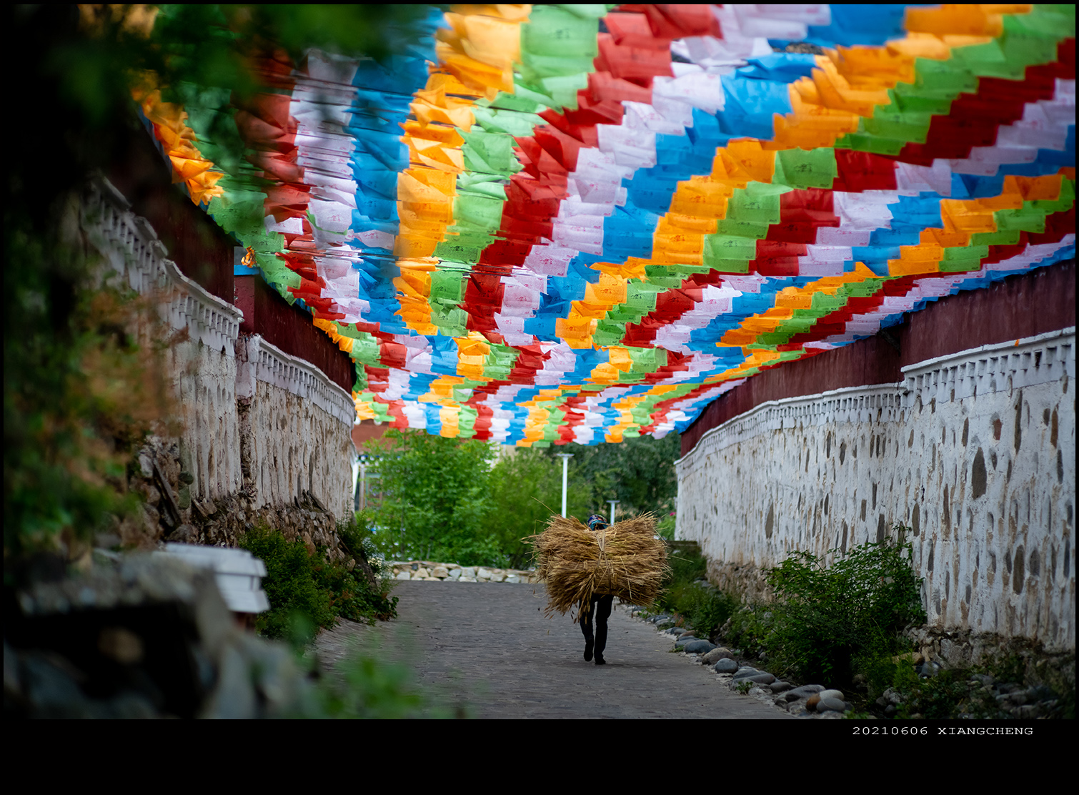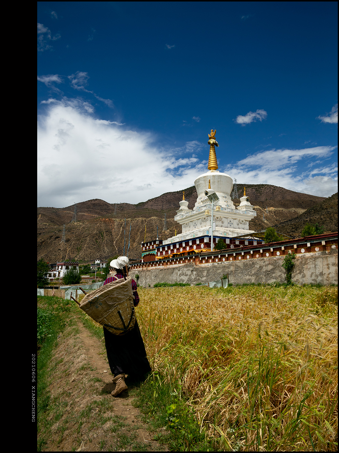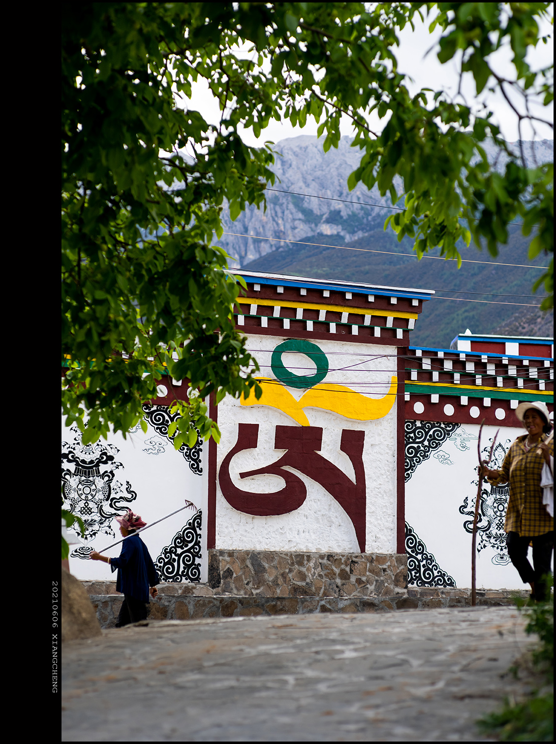 对于拖着拉杆箱旅游的享受派来说,乡城没什么缺点。交通便利,住宿条件优越,食物爽口,景色怡人。我住的这个仲德村,距离县城10公里不到,村里有一家装修格调颇有特色的民宿叫做“皈院”。乡城三个最有名的招牌之一就是白藏房(另外两个是当地特色服饰“疯装”和桑披岭寺),皈院的设计基础就是白藏房。当然客房肯定不可能真的弄成藏民家里那个样子,上下楼梯腿都发颤,乡亲们家里那个楼梯为啥要弄这么陡峭我很不明白。皈院的客房内部是很现代化的,连自动马桶都有,所以住惯了酒店的人完全不用担心,当然房价也不可能是乡民开的民宿那种三五百(具体价格可以实时在网上自己搜)。如果非要去住老乡家里也行,村里有不少真正的藏房民宿,不过我没进去实地考察。实际上这个地方看起来并不像是需要那么多民宿的景点,也许它还处于开发初期,我不确定。总之我在村里这几天时间除了看见一辆山西来的旅游大巴路过下来参观,基本没见到游客,而这个季节正是乡城最舒适美丽的六月。