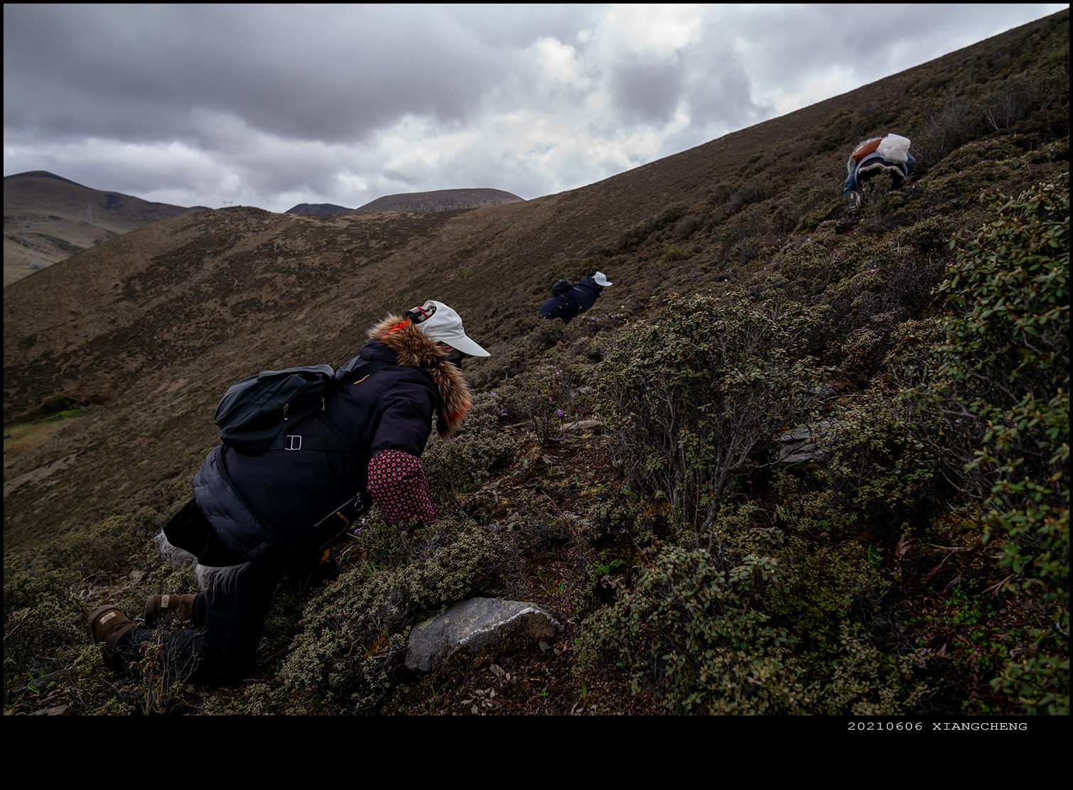 川西高原上有很多地方可以挖天然虫草。由于价格日益昂贵,海拔稍低的都挖绝了,现在基本要到4500米以上才有可能挖到。乡民挖虫草是成规模的,一堆人聚集居住在固定的棚户区,每天三五结伴去爬山。运气好的一天也就挖到三五根,倒霉的就会颗粒无收。虫草商定期到棚户区来收货,清理干净晒干的虫草按根论价,粗大一点的一根70,瘦小一点的30一根。老乡辛辛苦苦在山上趴着找一天,最多也就挣个三百块。这个玩意出奇地难找,你就是告诉我脚下有,我都未必找得到露出地面那点米粒大的芽尖。因此挖虫草的人普遍都是一直爬着走的,站着弯腰是看不到的。
