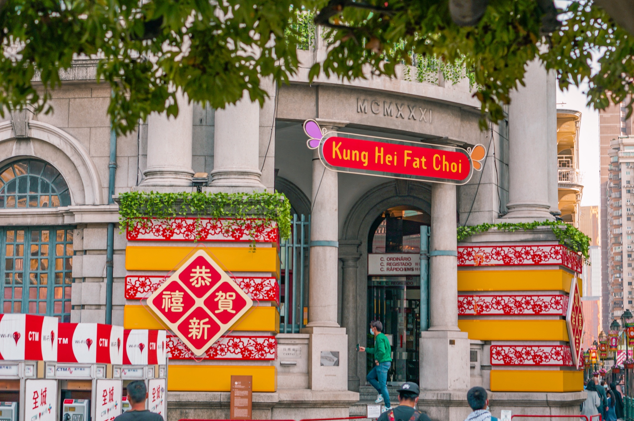 看邮政总局可知这座融合中西方文化的小城独有的包容胸怀,邮政总局入口的新春祝福语:“Kung Hei Fat Choi”,此非英文,就是粤语直音:恭(Kung)囍(Hei)發(Fat)財(Choi),近期来澳门的朋友可以留意看看!!