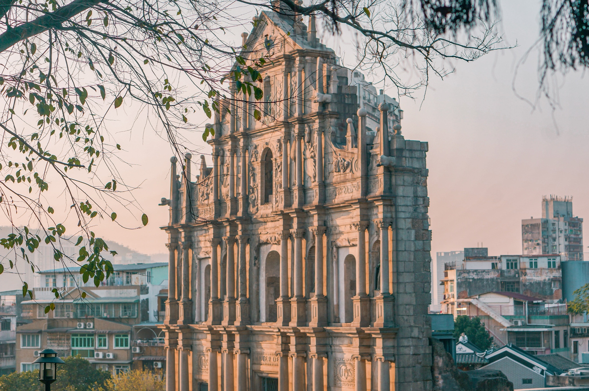 澳门半岛的古建筑群有着许多葡萄牙殖民时期留下的遗迹,景点相对比较集中,例如游人一日游必打卡的大三巴牌坊、玫瑰堂、恋爱巷、妈祖阁