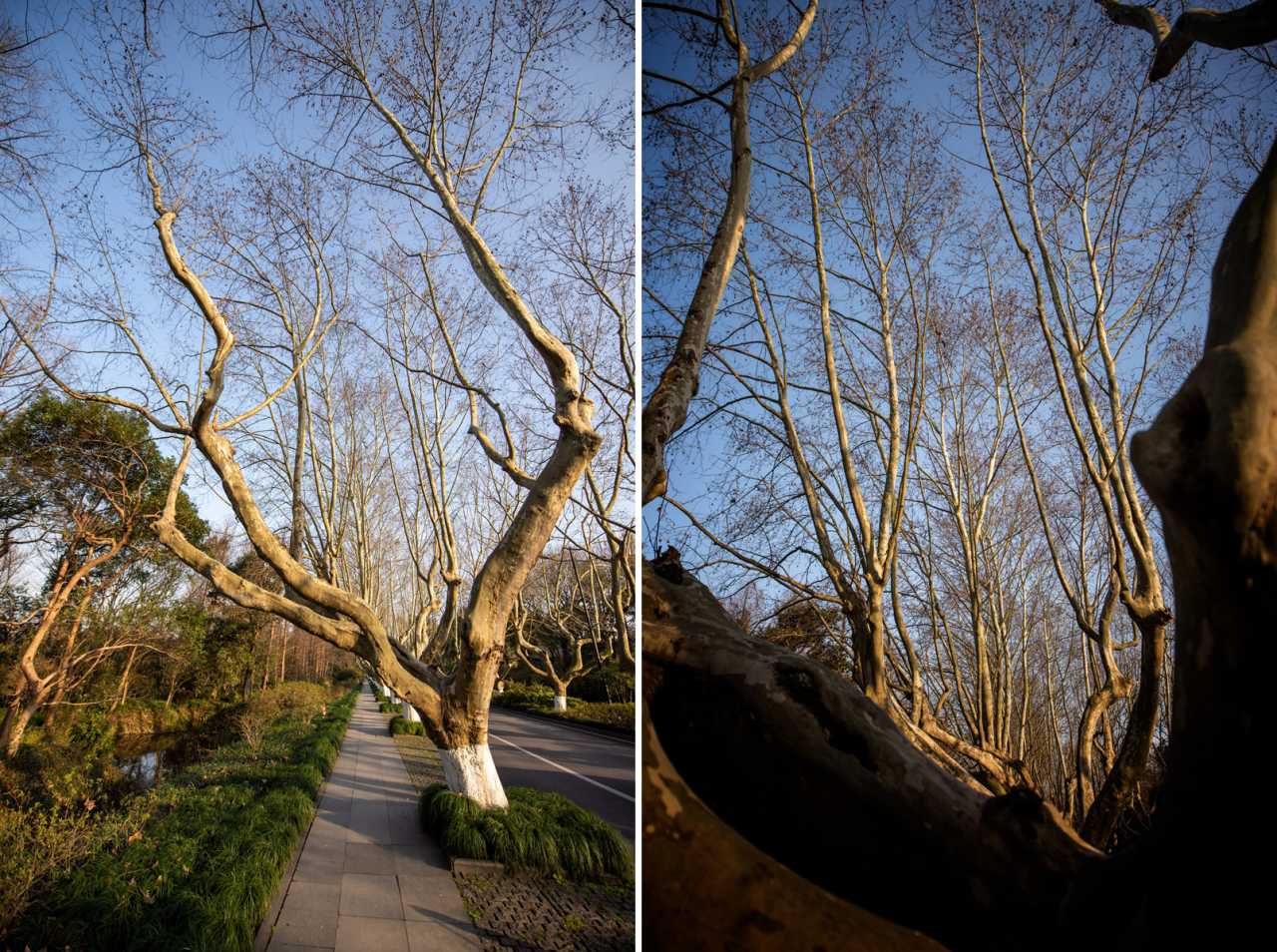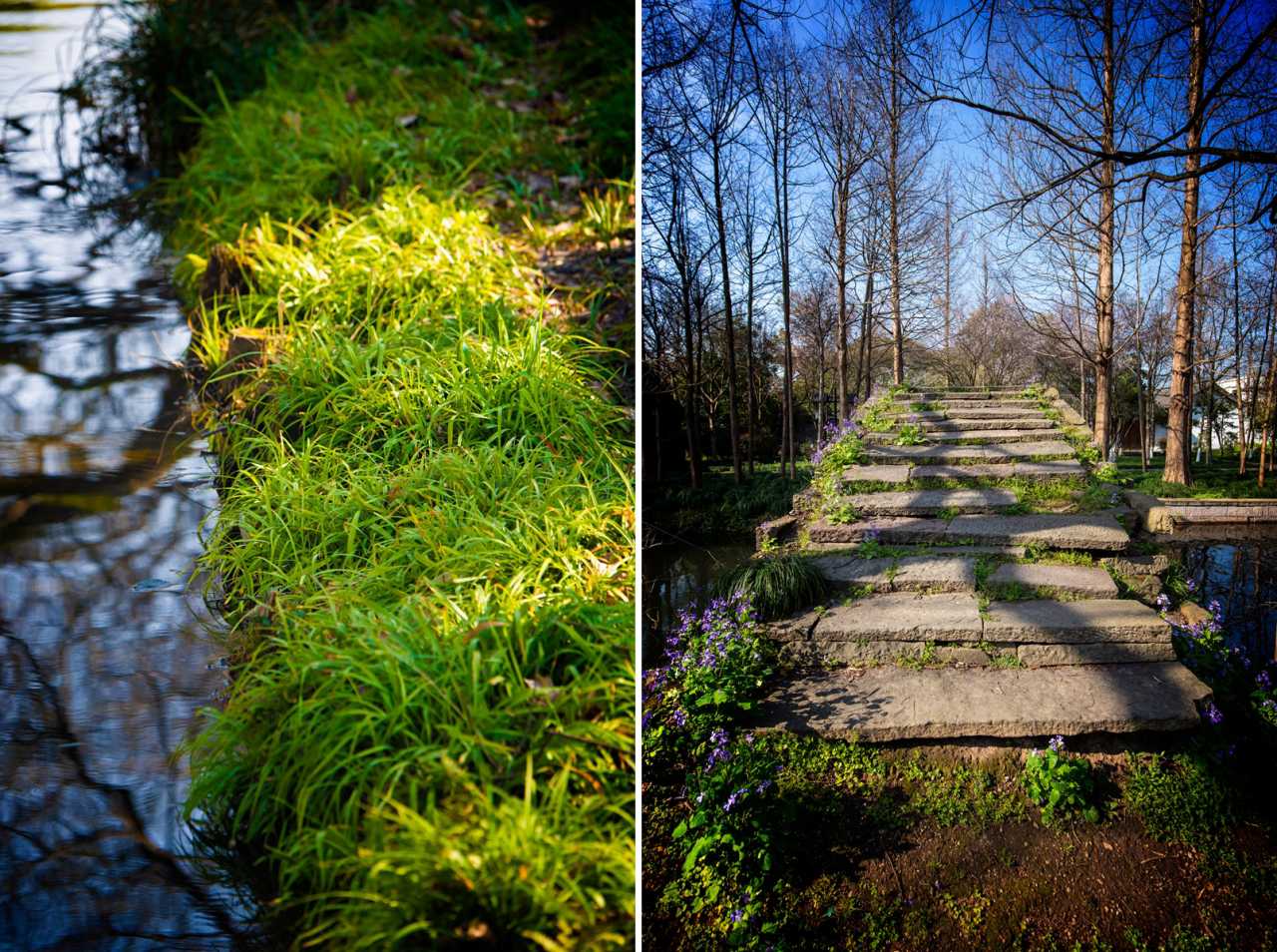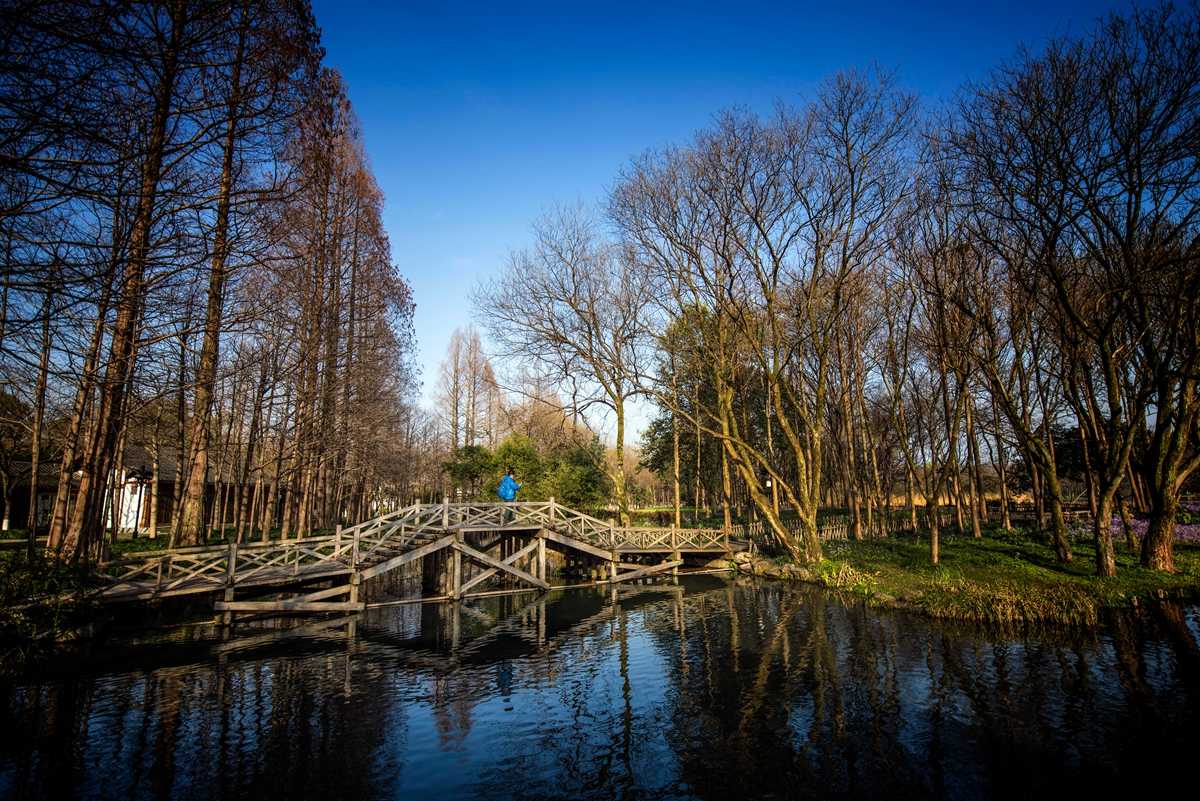 沿着木板搭起的小径漫步于疏竹丛苇间,即便树上没有一片叶子,也不影响它的清幽。