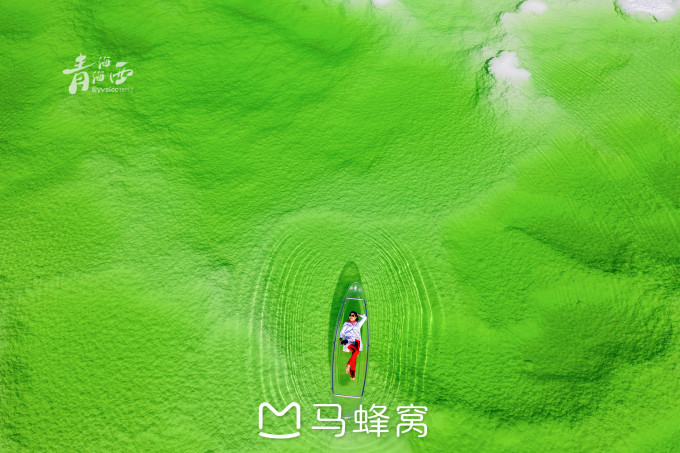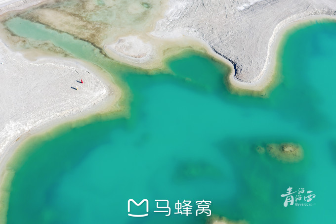 中间是蓝绿的湖水,色泽不亚于青海湖