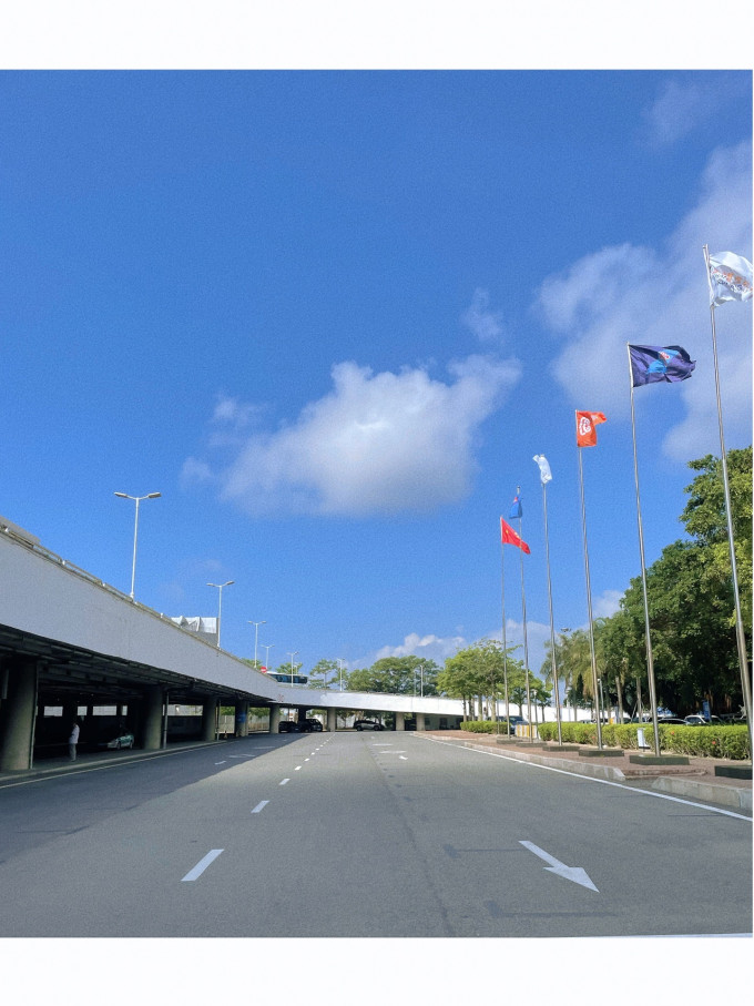 机场外面有专门的网约车上车地点 很便捷 天气有点热热的 等了一会车 拍了几张照片 蓝天白云⬇️