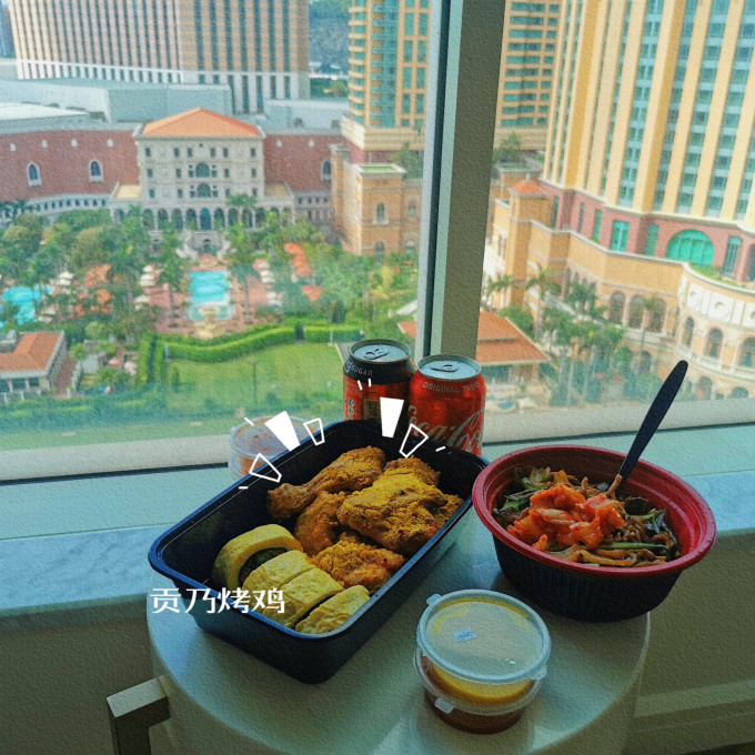 过桥的时候随手拍了一张 表示一下 真的很大太阳 放好行李 立马做了核酸检测 然后去吃了午饭 第一顿点餐 其实是好吃的 但感觉吃的不dei劲儿