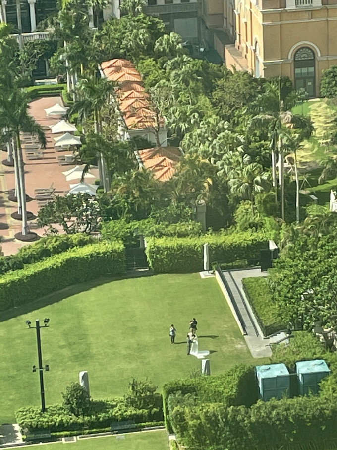 到了房间之后 打开窗户就看到了大大的草坪 第一反应是 想在这里举行婚礼 然鹅没过多久就看到有新人在拍婚纱照