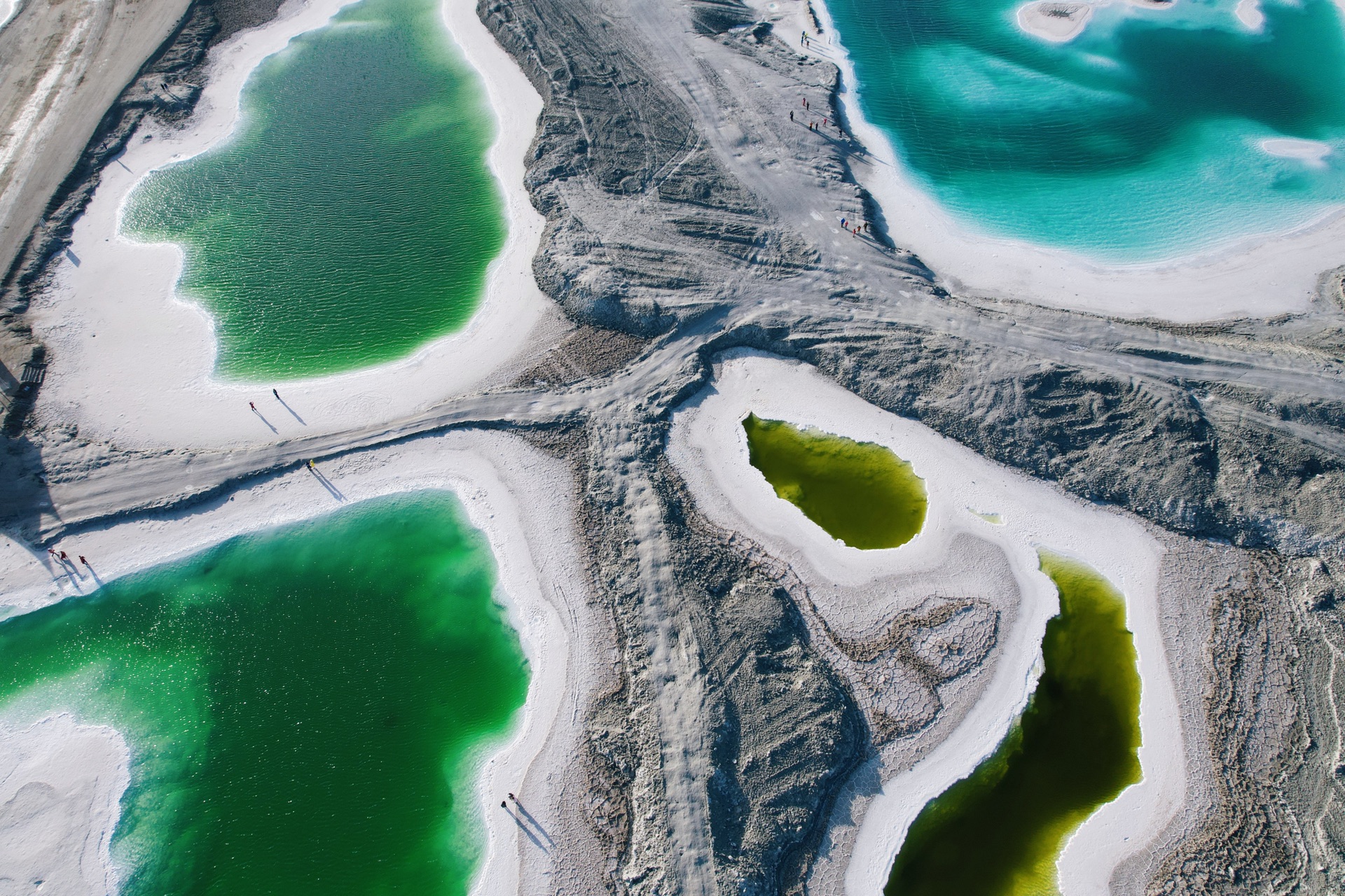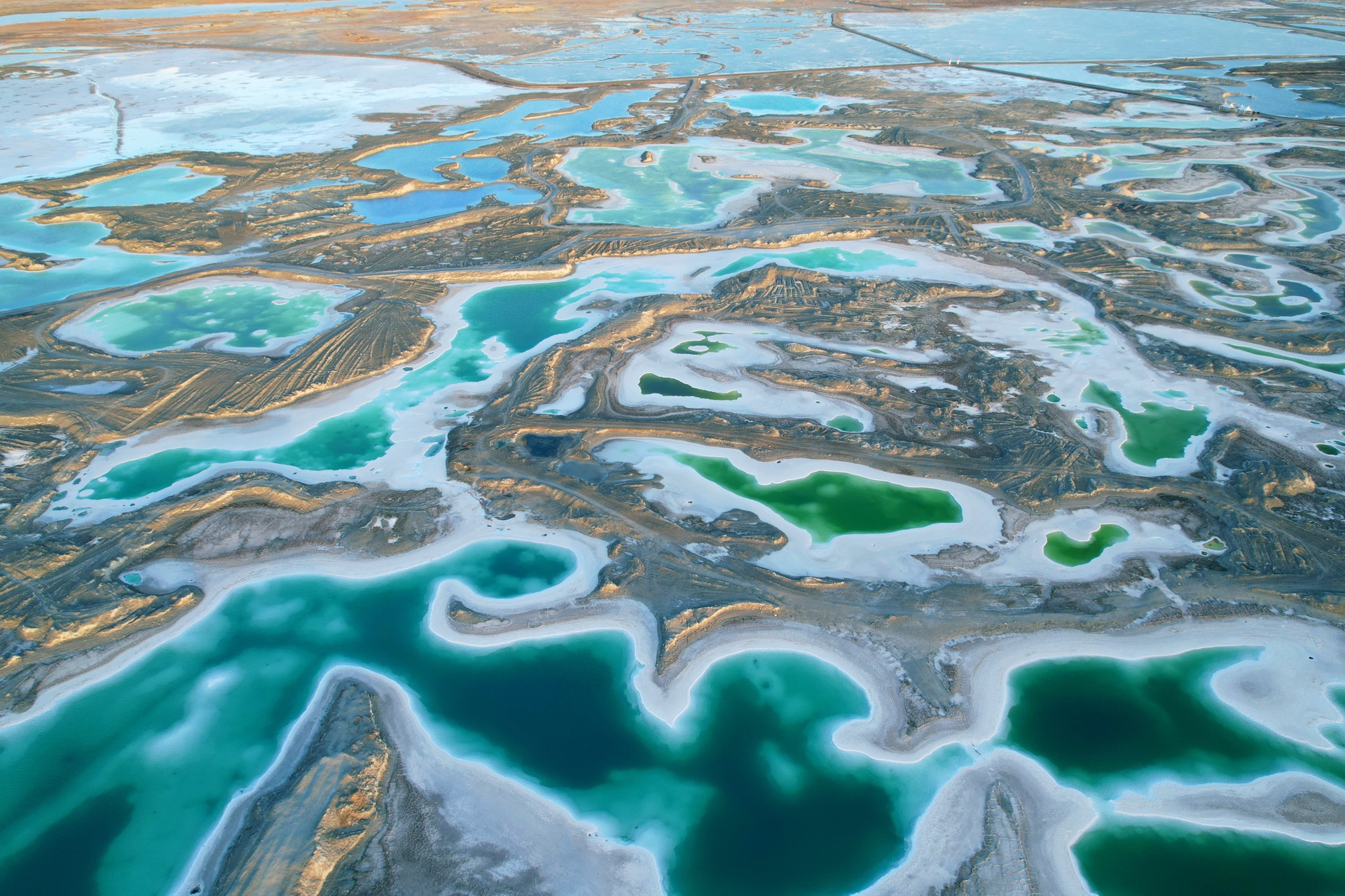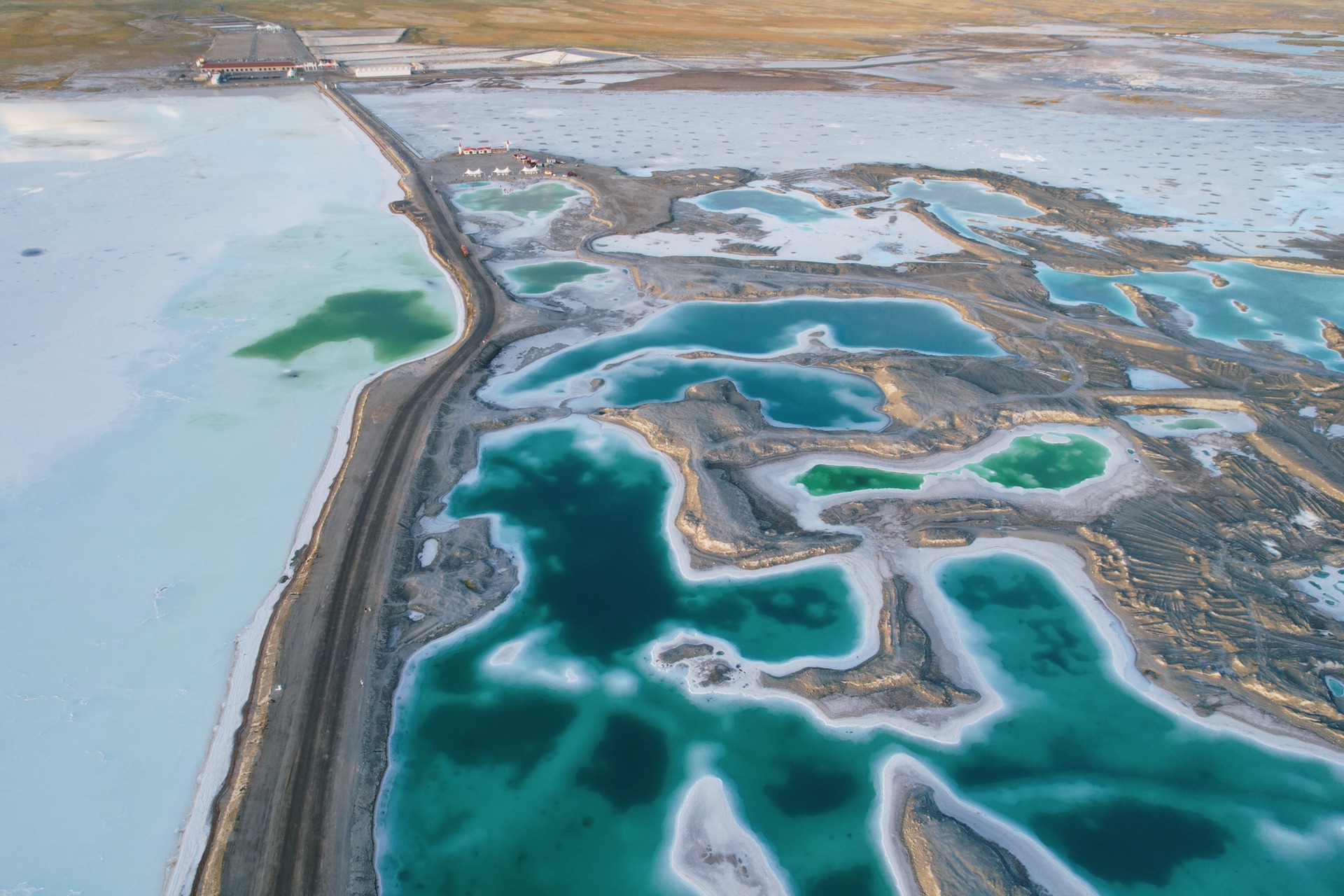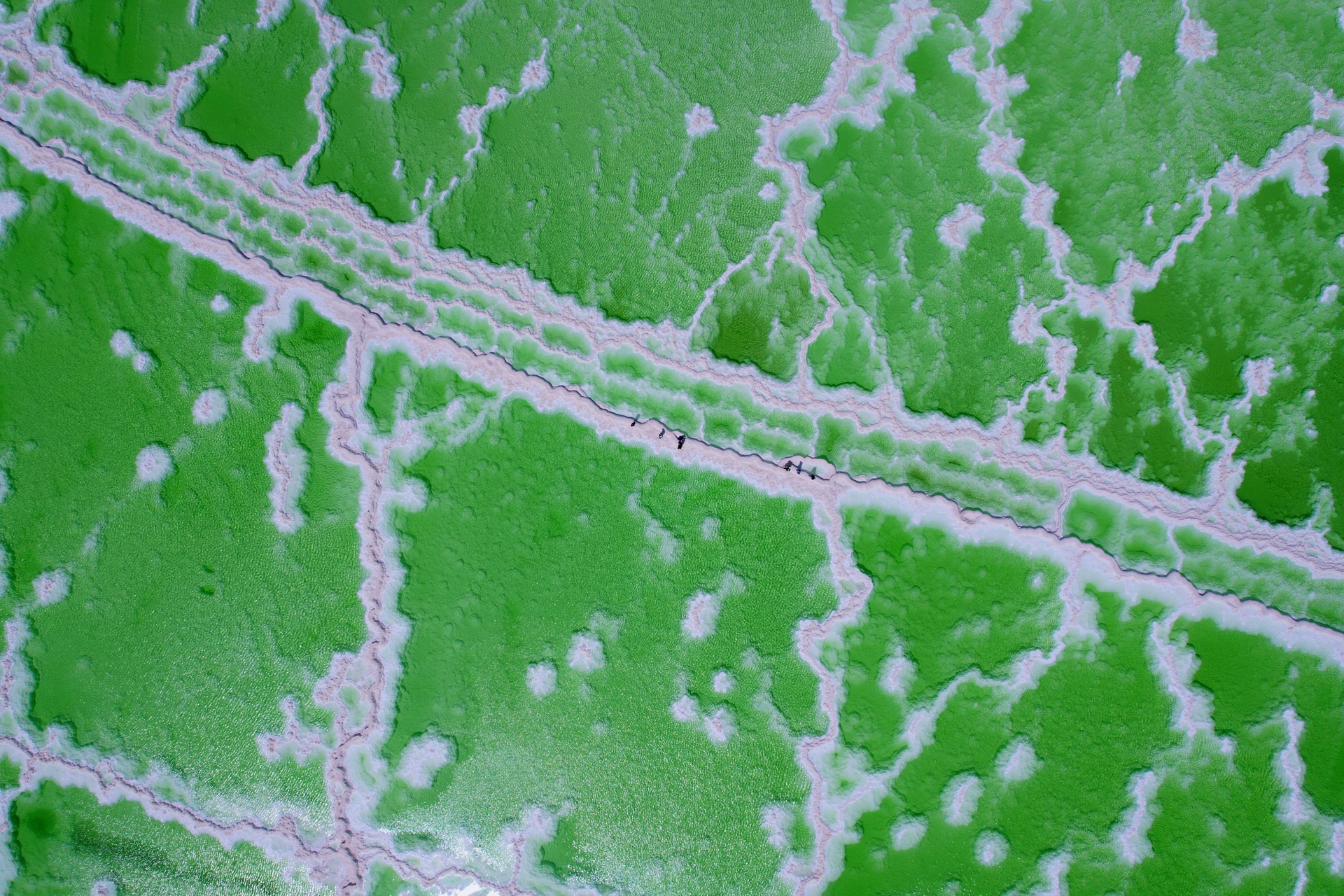 盐湖的水是浅绿色的。其实在地面看察尔汗盐湖已经很漂亮了,在无人机角度更是震撼。